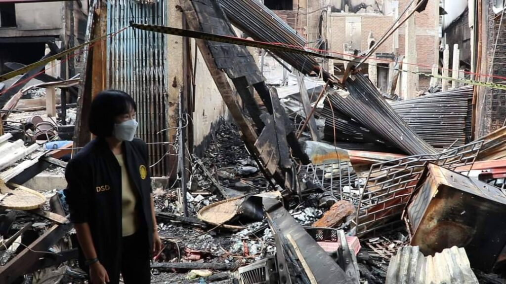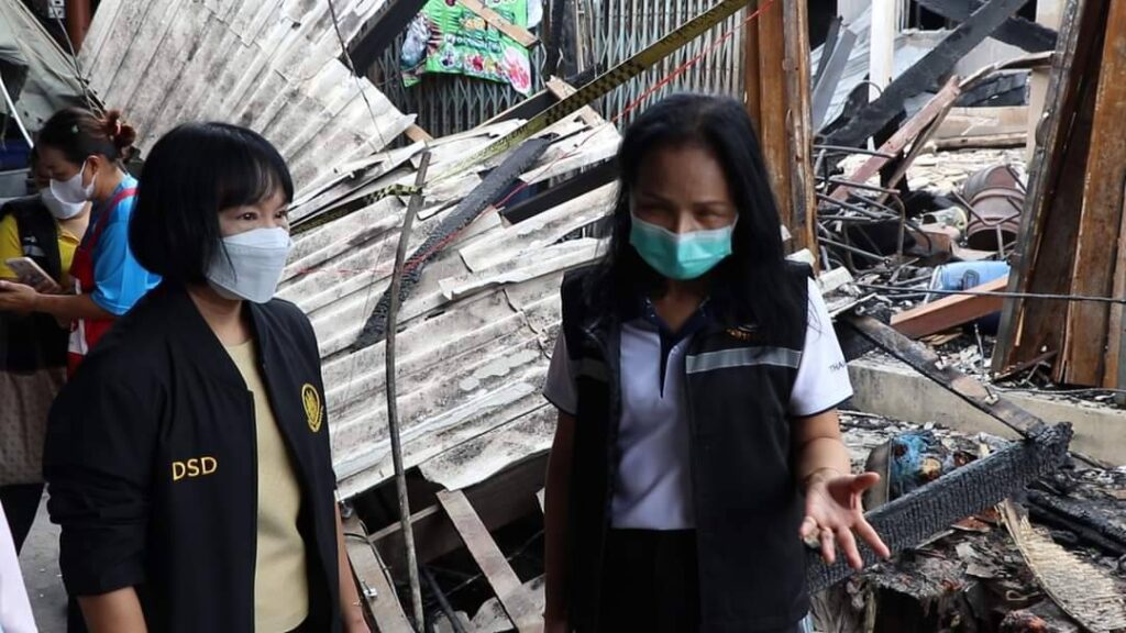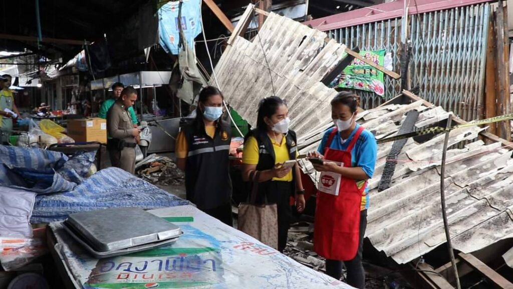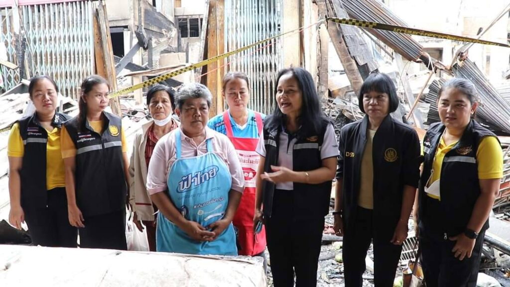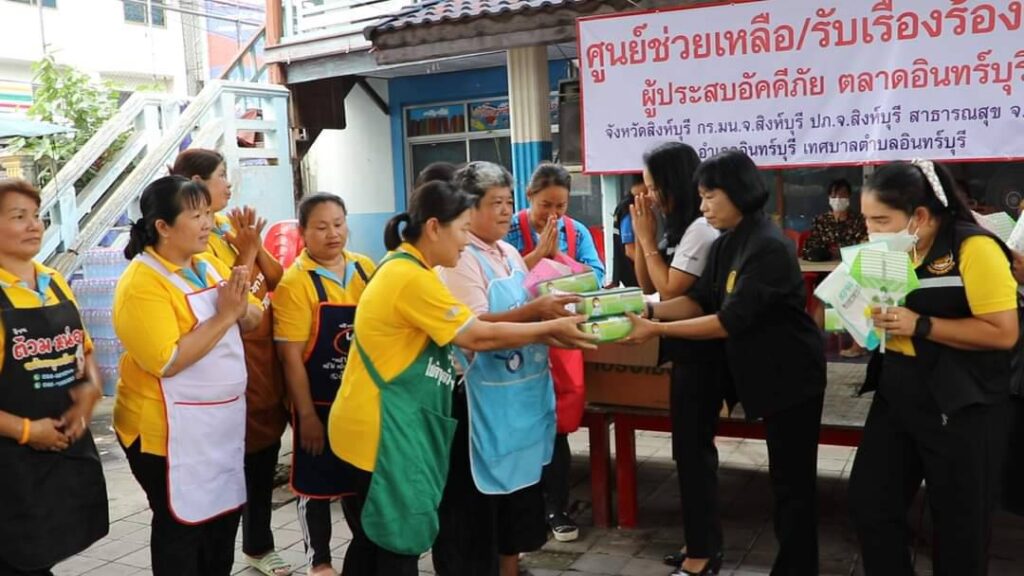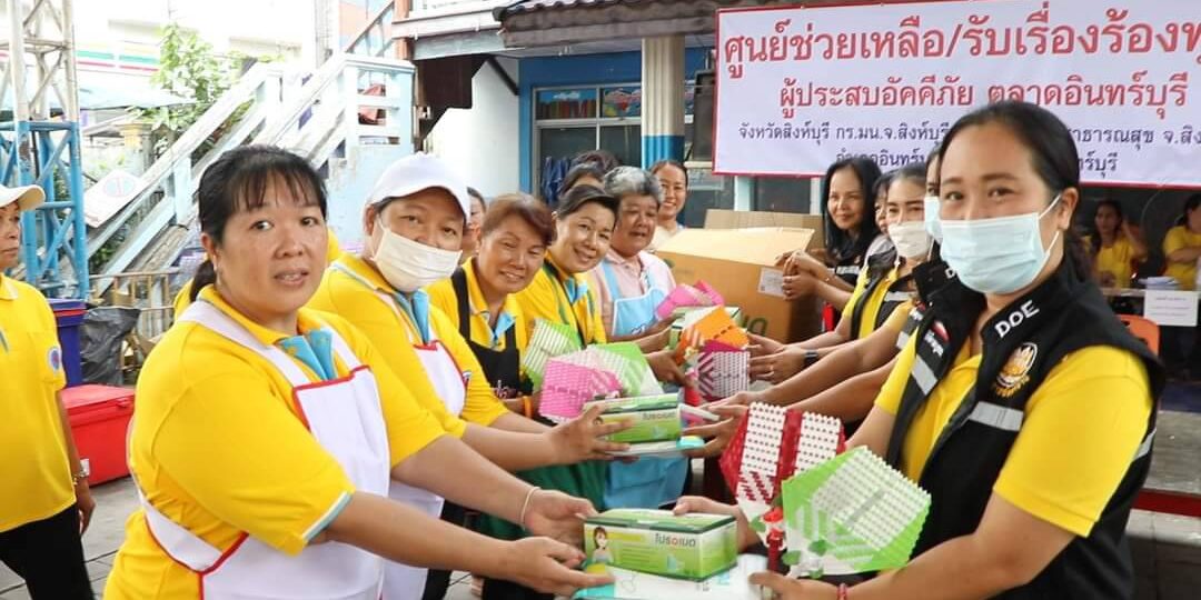 วันจันทร์ที่ 21 สิงหาคม 2566 เวลา 09.30 น. นางสุนิมิต มีดา นักวิชาการแรงงานชำนาญการพิเศษ รักษาราชการแทนจัดหางานจังหวัดสิงห์บุรี พร้อมแรงงานจังหวัดสิงห์บุรี และเจ้าหน้าที่สำนักงานจัดหางานจังหวัดสิงห์บุรี ลงพื้นที่เกิดเหตุประสบอัคคีภัย ตลาดอินทร์บุรี เพื่อเยี่ยมเยียนให้กำลังใจและสำรวจความเดือดร้อนในการประกอบอาชีพและการหางานทำ จากเหตุเพลิงไหม้ตลาดอินทร์บุรี อำเภออินทร์บุรี เมื่อวันเสาร์ที่ 19 สิงหาคม 2566 ช่วงเวลาประมาณ 19.20 น. จากการสอบถามข้อมูลความเสียหายจากเทศบาลตำบลอินทร์บุรีพบอาคารได้รับความเสียหายจำนวน 34 คูหา 21 ครัวเรือน (หรือเจ้าของ) ประชาชนได้รับผลกระทบ จำนวน 63 ราย เสียชีวิต 1 ราย สำนักงานฯได้สำรวจแล้วพบว่าประชาชนส่วนใหญ่พ่อค้าแม่ค้าที่ประสบภัยมีอาชีพค้าขายอยู่แล้ว จึงยังคงต้องการประกอบอาชีพค้าขายต่อไป และยังไม่ประสงค์หางานอื่นหรือหาอาชีพอื่นทำ ซึ่งสำนักงานจัดหางานจังหวัดสิงห์บุรี ได้นำหน้ากากอนามัย จำนวน 200 แพค 50 กล่อง สเปย์แอลกอฮอล์และพัดอีกจำนวนหนึ่ง มอบให้กับเจ้าหน้าที่เทศบาลอินทร์บุรี ณ ศูนย์ช่วยเหลือผู้ประสบภัย (โรงเรียนจีนเดิม) เทศบาลอินทร์บุรี เพื่อนำไปแจกจ่ายให้กับผู้ประสบภัยใช้บรรเทาความเดือดร้อนในชีวิตประจำวันต่อไป