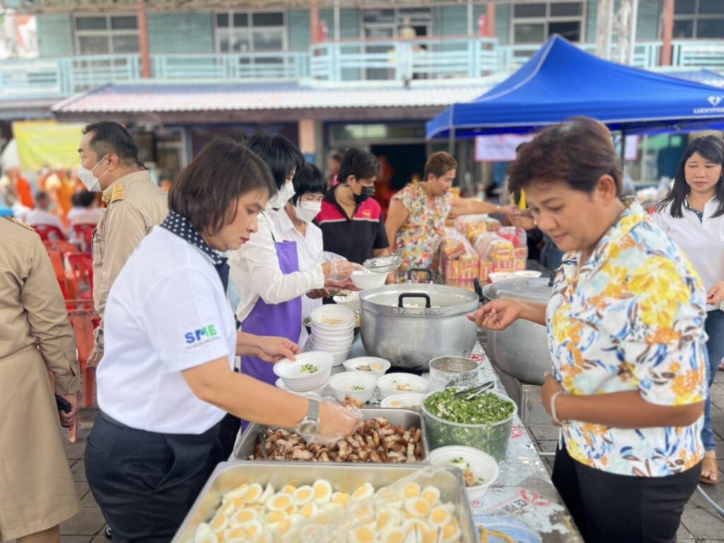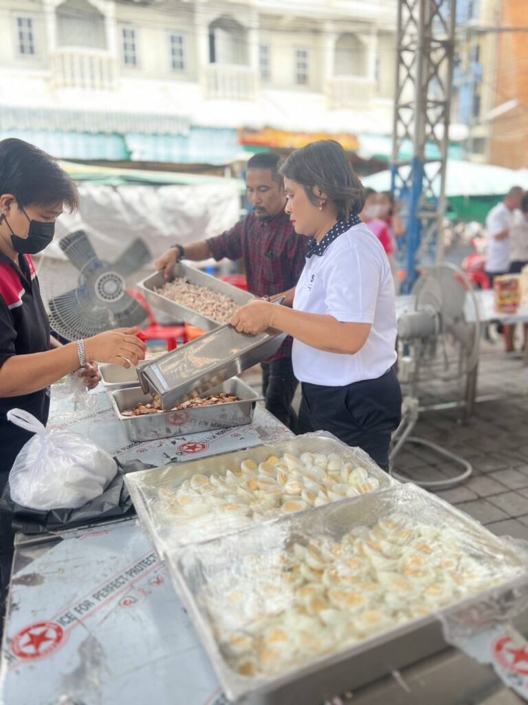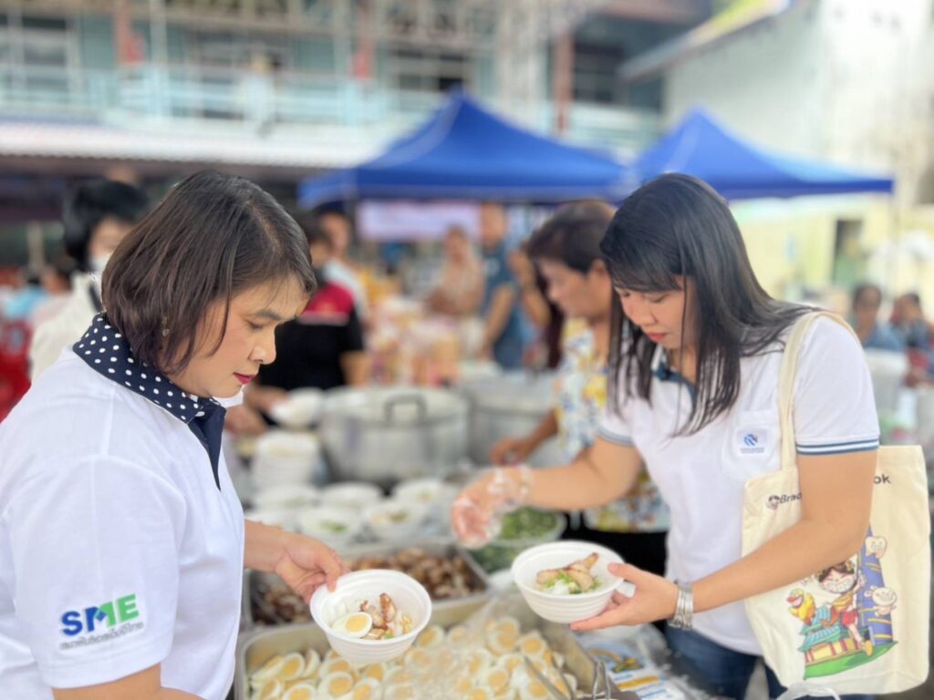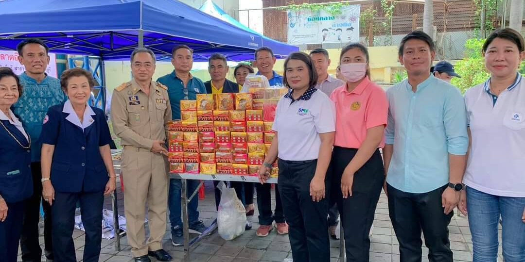 สมาพันธ์ SME ไทย จังหวัดสิงห์บุรี นำโดย นางอรพรรณ รักถนอม ประธานสมาพันธ์ smeฯ ร่วมกับ นายกฤษดา ประสงค์สุขสันต์ รองประธานสมาพันธ์ฯ ผู้บริหารร้านเกษราเบเกอรี่ นำก๋วยจั๊บโบราณ ส่งมอบกำลังใจให้กับผู้ประสบภัย อาสาสมัคร และบุคลากรที่ให้ความช่วยเหลือ ที่ตลาดอินทร์บุรี เวลา 11.00 น. และคณะกรรมการบริหารสมาพันธ์ฯ ร่วมกันบริจาคน้ำดื่ม จำนวน 120 แพค และยังมีน้ำอ้อยคั้นสด จากพิมไพน้ำอ้อยคั้นสด โดย คุณชัยรัตน์ ทับทอง ร่วมส่งมบความห่วงใยด้วย