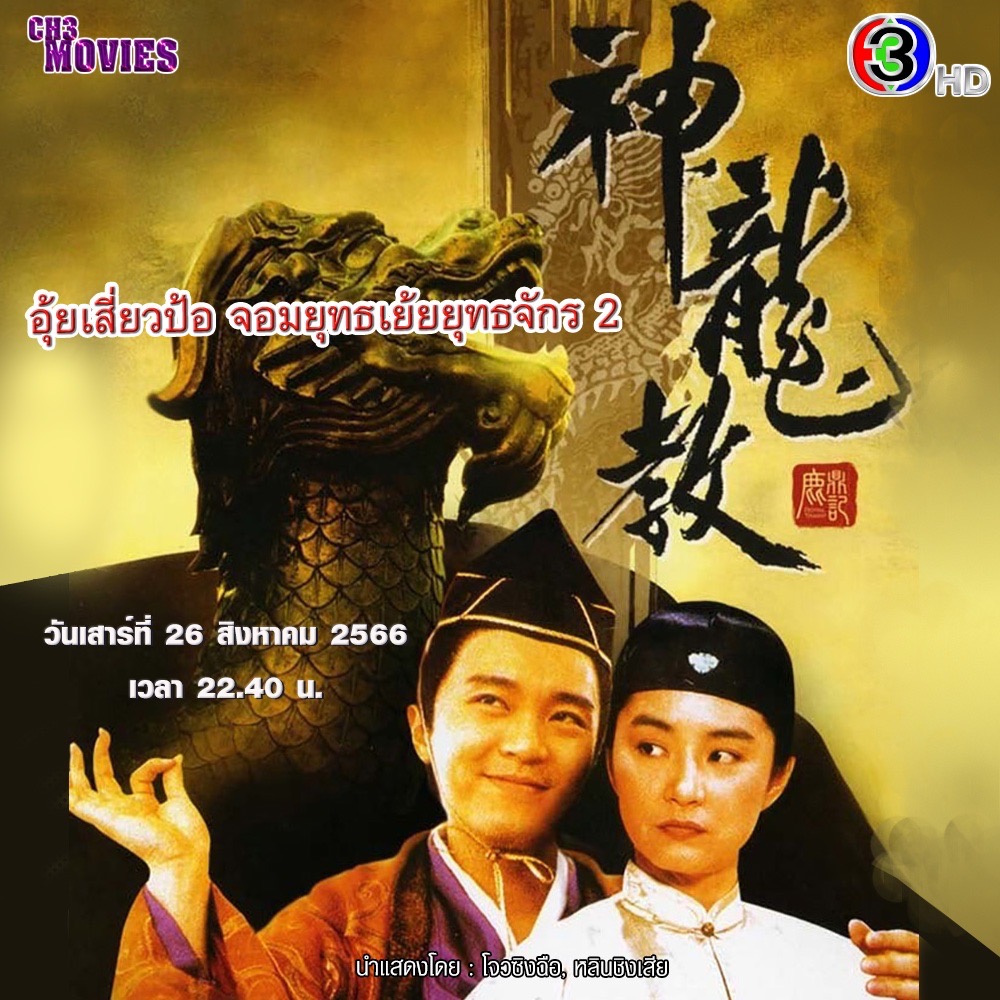 ปิดท้ายวันหยุดด้วยภาคต่อของอุ้ยเสี่ยวป้อ “แชนแนลทรีมูฟวี่ส์” เสนอภาพยนตร์ “อุ้ยเสี่ยวป้อ จอมยุทธเย้ยยุทธจักร 2: Royal Tramp 2 ” นำแสดงโดย : โจวซิงฉือ, หลินชิงเสีย เมื่อพวกกบฏคิดวางแผนก่อการร้ายล้มบัลลังก์ฮ่องเต้ อุ้ยเสี่ยวป้อ คนสนิทของฮ่องเต้ ไม่มีวิทยายุทธ มีแต่สติปัญญาขณะเดียวกัน หลงเออ ประมุขของเทพพรรคมังกรได้รับใช้ ฮ่องอู่ซานกู้ ผู้คิดกบฏ แต่ภายหลัง หลงเออ ถูกหักหลังจากฮ่องอู่ซานกู้ หลงเออถูกวางยาถ้าไม่ได้มีสัมผัสสวาทกับผู้ชายก็จะตายก่อนฟ้าสาง อุ้ยเสี่ยวป้อ ได้ช่วยชีวิตไว้ และได้รับการถ่ายทอดวิทยายุทธจากหลงเอออีกด้วย จากนั้นจึงได้ร่วมมือกันหาวิธีกำจัดฮ่องอู่ซานกู้ ติดตามได้ใน“แชนแนลทรีมูฟวี่ส์” “อุ้ยเสี่ยวป้อ จอมยุทธเย้ยยุทธจักร2: Royal Tramp 2” เวลา 22.40 น.