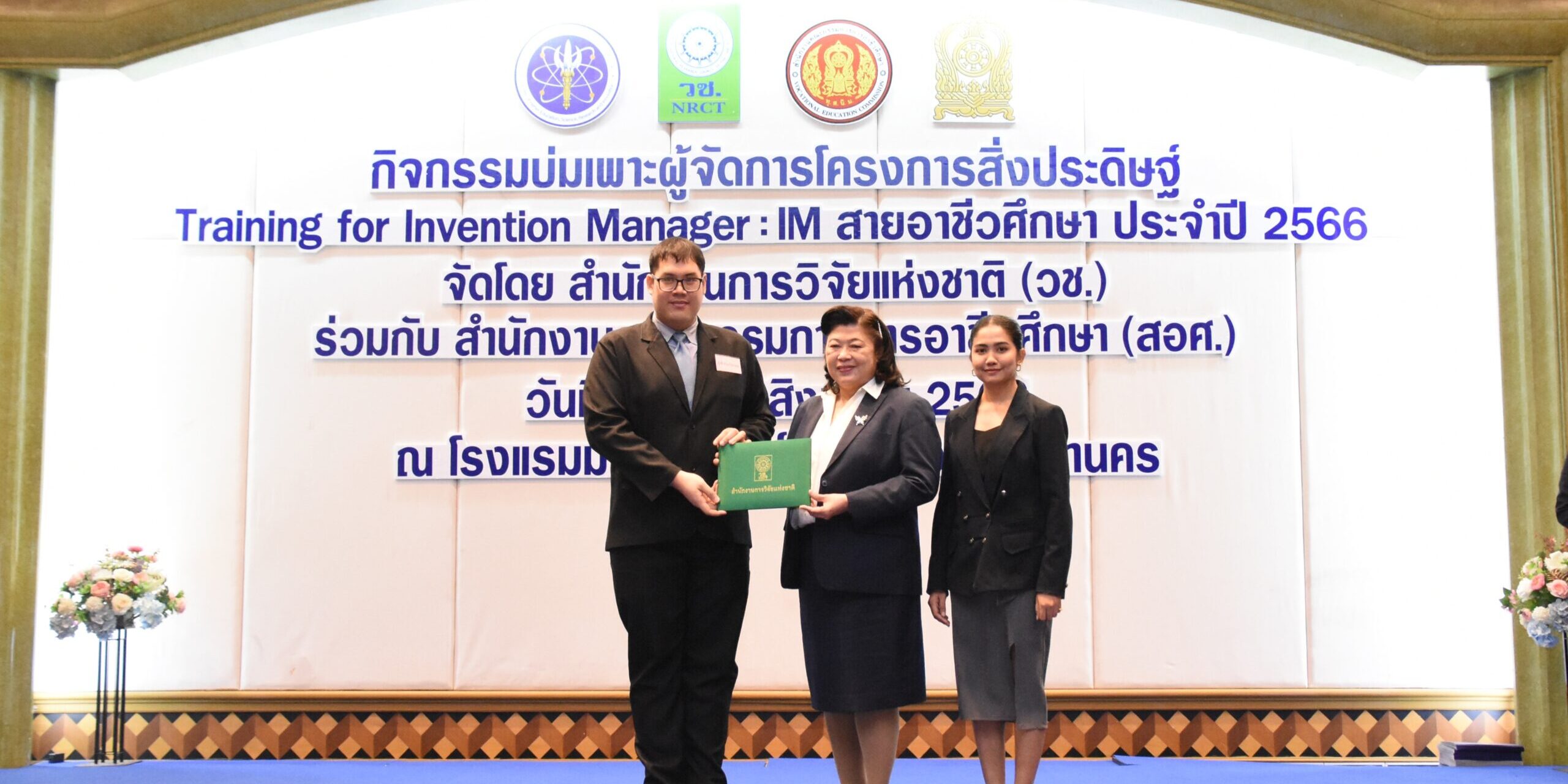 สำนักงานการวิจัยแห่งชาติ (วช.) กระทรวงการอุดมศึกษา วิทยาศาสตร์ วิจัยและนวัตกรรม (อว.) ร่วมกับ สำนักงานคณะกรรมการการอาชีวศึกษา (สอศ.) จัดพิธีปิดกิจกรรม “บ่มเพาะผู้จัดการโครงการสิ่งประดิษฐ์ Training for Invention Manager : IM สายอาชีวศึกษา ประจำปี 2566” และพิธีมอบเกียรติบัตรผลงานติดดาวผลงานเด่นอาชีวศึกษา จำนวน 17 ผลงาน โดยมี ดร.วิภารัตน์ ดีอ่อง ผู้อำนวยการสำนักงานการวิจัยแห่งชาติ (ผอ.วช.) เป็นประธานในพิธีปิดกิจกรรมฯ และมอบรางวัลฯ ณ โรงแรมมารวย การ์เด้น กรุงเทพฯ