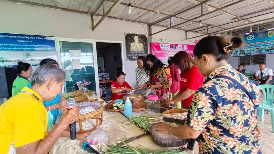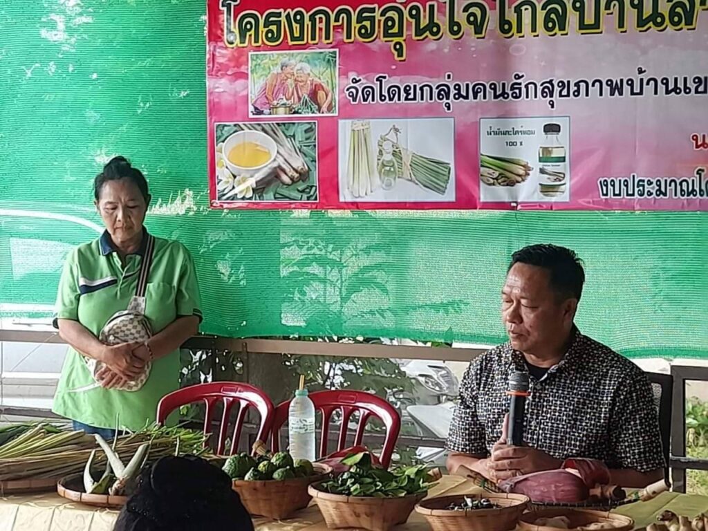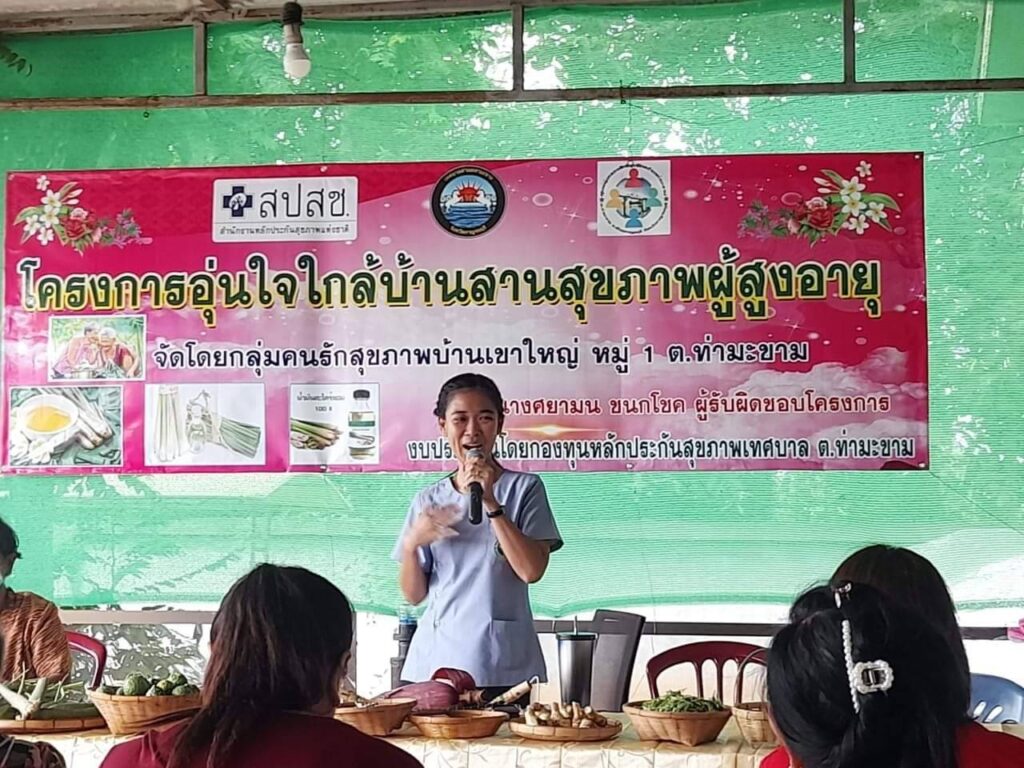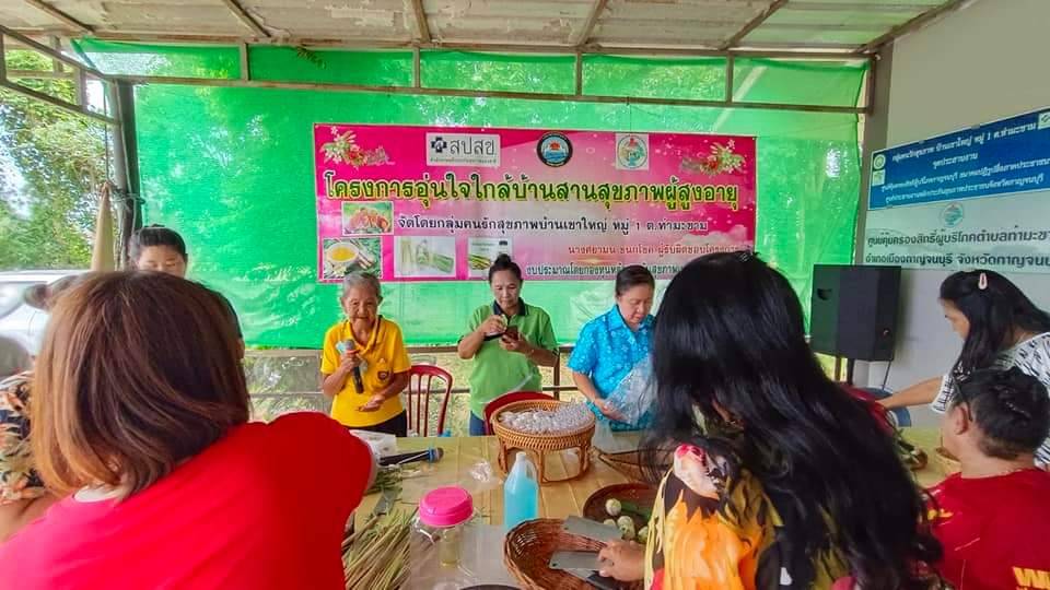 วันที่ 27 สิงหาคม2566เวลา13.00น.ที่ สำนักงานกลุ่มคนรักสุขภาพบ้านเขาใหญ่ หมู่ 1 ต.ท่ามะขาม อ.เมือง จ.กาญจนบุรี นายกฤษฏา ประยูรไทย นายกเทศมนตรีตำบลท่ามะขาม เป็นประธานเปิดโครงการอุ่นใจใกล้บ้านสานสุขภาพผู้สูงอายุ นางศยามน ชนกโชค ประธานศูนย์คุ้มครองผู้บริโภคบ้านท่ามะขาม(กลุ่มคนรักสุขภาพบ้านเขาใหญ่) ผู้รับผิดชอบโครงการงบประมาณโดยกองทุนหลักประกันสุขภาพเทศบาลตำบลท่ามะขาม กล่าววัตถุประสงค์ของโครงการ ฯ โดยนางสาวปกฉัตร โรจนกุล นักวิชาการสาธารณสุขปฏิบัติการ รพ.สต.บ้านยาง วิทยากรบรรยายให้ความรู้เกี่ยวกับพืชสมุนไพรใกล้ตัวที่มีอยู่แทบทุกครัวเรือน ที่มีประโยชน์ต่อสุขภาพร่างกาย นางนภา ทองสุทธา เจ้าของร้านสิทธิโอสถ ผู้ผลิตและจำหน่ายยาสมุนไพร วิทยากรสาธิตวิธีการทำสเปรย์น้ำมันตะไคร้หอม สำหรับป้องกันยุง โดยมีผู้นำชุมชน ชาวบ้านเขาใหญ่ และอสม. เข้าร่วมจำนวน 50 คน