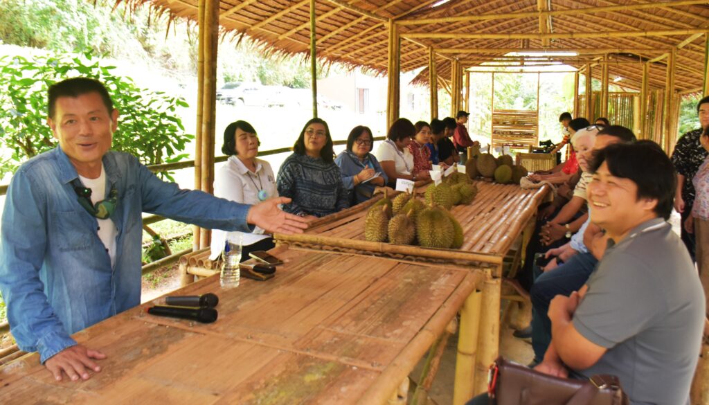 โดยมีเกษตรกรเจ้าของสวนทุเรียนในพื้นที่ นายเมธา กสินุรักษ์ และ นายพัลลภ เฉลิมพนาพันธุ์ ให้การต้อนรับ ณ จีนสวน คาเฟ่ทุเรียน อำเภอเบตง จังหวัดยะลา