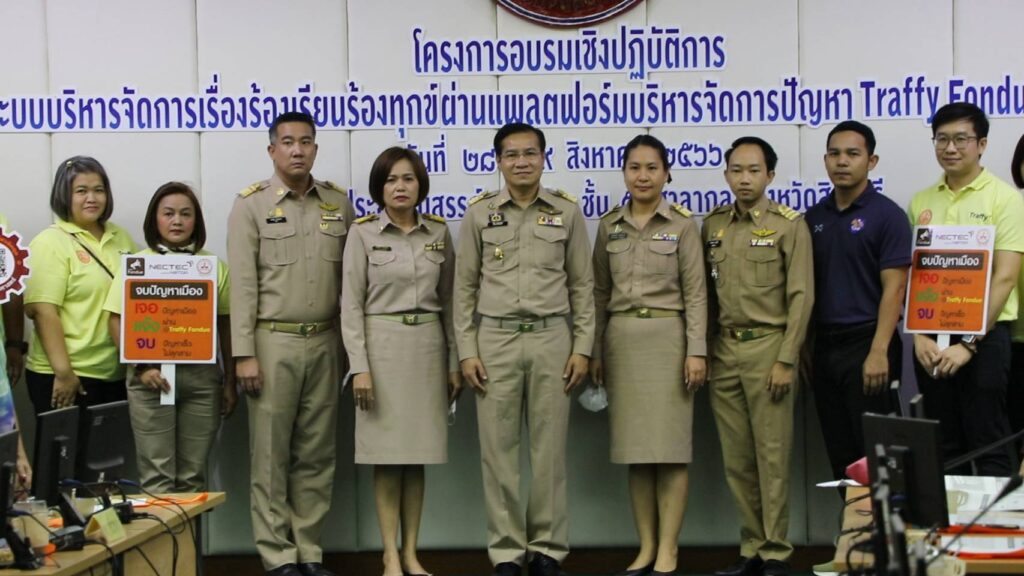 วันที่ 28 สิงหาคม 2566 นายปรีชา ดิลพรเมธี ปลัดจังหวัดสิงห์บุรี เป็นประธานในพิธีเปิดโครงการอบรมเชิงปฏิบัติการ”ระบบบริหารจัดการเรื่องร้องเรียนร้องทุกข์ผ่านแพลตฟอร์มบริหารจัดการปัญหา Traffy Fondue”จังหวัดสิงห์บุรี วันที่ 28-29 สิงหาคม 2566 ณ ห้องประชุมขุนสรรค์ พันเรือง ชั้น 5 ศาลากลางจังหวัดสิงห์บุรี โดยนางสาวนภาพรรณ สิงห์สุวรรณ์ ผู้อำนวยการกลุ่มงานศูนย์ดำรงธรรม สำนักงานจังหวัดสิงห์บุรี ร่วมกับ ดร.วสันต์ ภัทรอธิคม ดร.ปิติภูมิ โพสสาวัง ผู้อำนวยการกลุ่มนวัตกรรมดิจิทัลสำหรับเมืองพร้อมทีมวิทยากรมหาวิทยาลัยวงษ์ชวลิตกุล จัดฝึกอบรมการใช้งานแพลตฟอร์มจัดการปัญหา Traffy Fondue ให้แก่กลุ่มเป้าหมายประกอบด้วย เจ้าหน้าที่รับเรื่องร้องเรียนร้องทุกข์ของส่วนราชการส่วนภูมทิภาค ส่วนราชการส่วนกลาง ส่วนราชการที่ตั้งอยู่ในพื้นที่ จังหวัดสิงห์บุรี หน่วยงานรัฐวิสาหกิจที่ให้บริการภาครัฐ อำเภอทุกอำเภอ องค์กรปกครองท้องถิ่นในจังหวัดสิงห์บุรี และสื่อมวลชนจังหวัดสิงห์บุรี จำนวน 139 คน สามารถใช้งานแพลตฟอร์มได้อย่างมีประสิทธิภาพและประชาสัมพันธ์การนำแพลตฟอร์มมาใช้การบริหารจัดการเรื่องร้องเรียนร้องทุกข์ของจังหวัดสิงห์บุรี