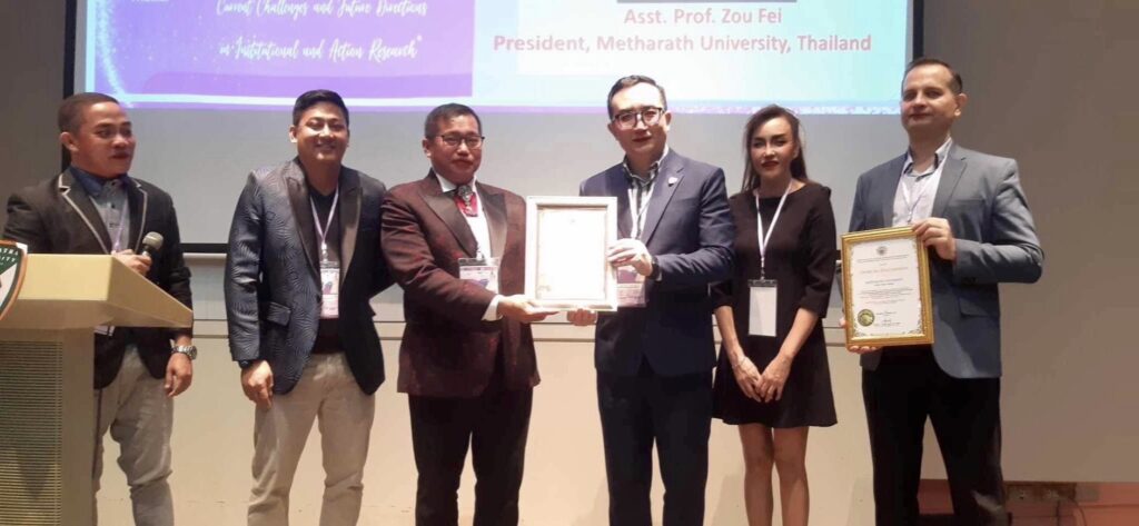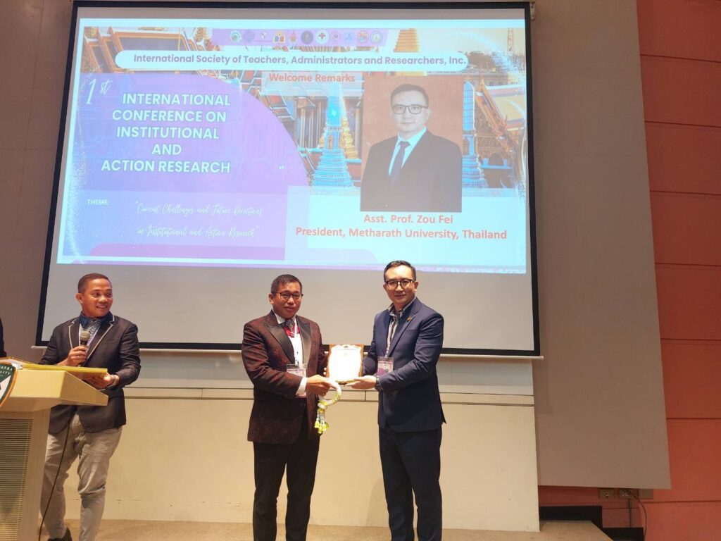วันที่ 29 สิงหาคม 2566 มหาวิทยาลัยเมธารัถย์ (ม.ชินวัตร) ตำบลบางเตย อำเภอสามโคก จังหวัดปทุมธานี รองศาสตราจารย์ โจว เฟย อธิการบดีมหาวิทยาลัยเมธารัถย์ ได้เปิดเผยว่า มหาวิทยาลัยได้เป็นเจ้าภาพจัดการประชุมวิชาการนานาชาติเรื่อง การวิจัยสถาบันและการวิจัยเชิงปฎิบัติการ และการมอบรางวัลอันทรงเกียรติ แก่เหล่าผู้บริหารจากมหาวิทยาลัย (1st International Conference on Institutional and Action Research : cum World-Class Excellence Awards 2023) เมื่อวันที่ 26 สิงหาคม 2566 ที่ผ่านมา ถือเป็นเวทีที่โดดเด่นสำหรับการแลกเปลี่ยนความรู้และแนวคิดภายในชุมชนการศึกษานานาชาติ