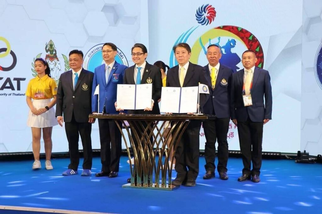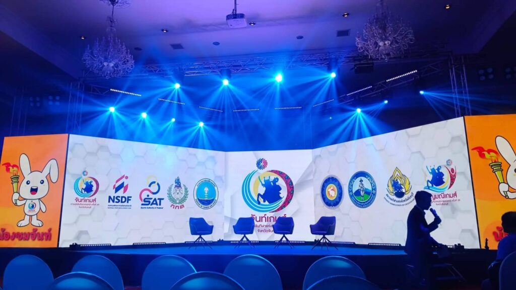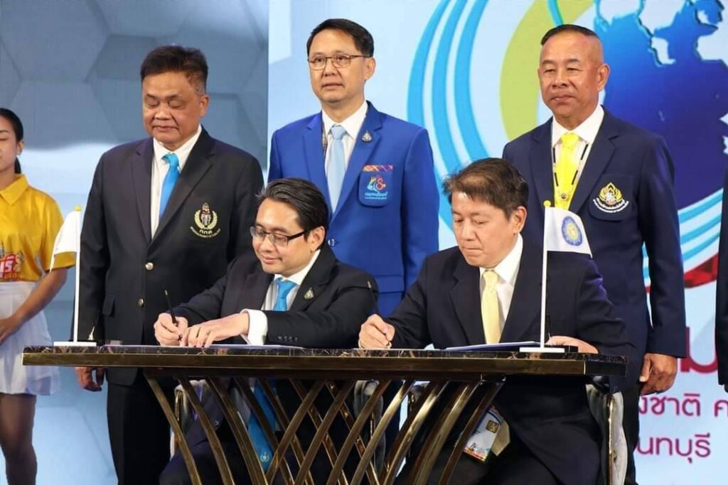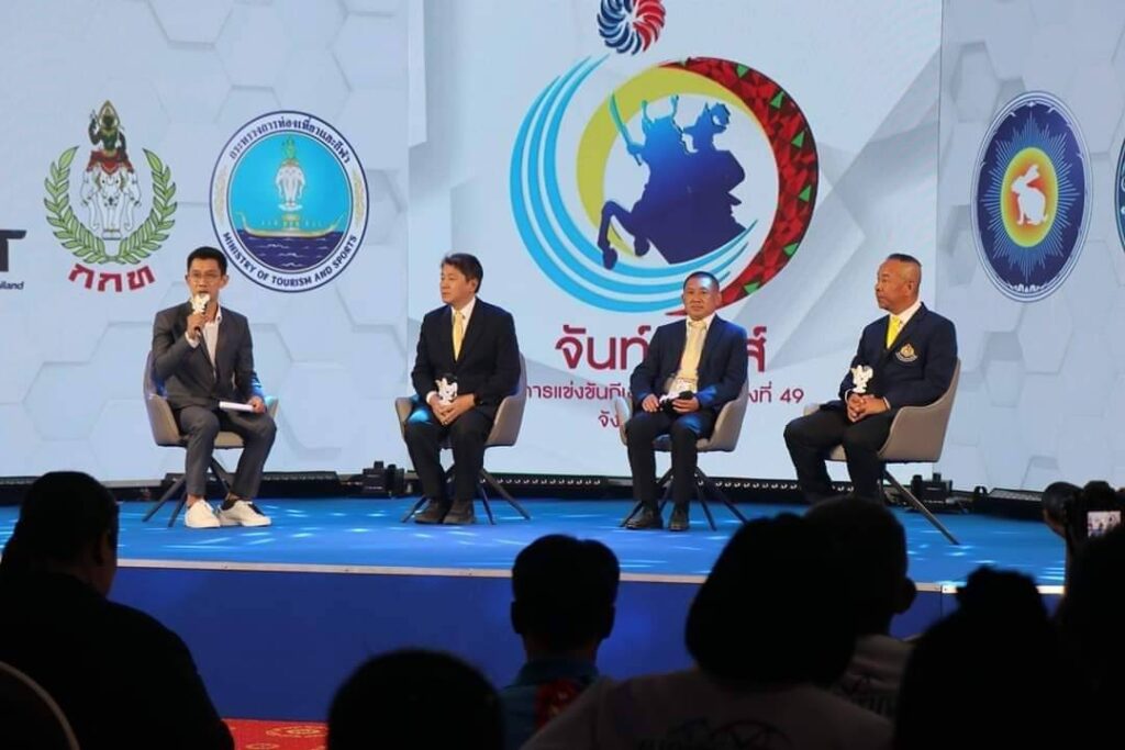 วันที่ 29 สิงหาคม 2566 เวลา10.30 น. ณ โรงแรมเฟลิกซ์ ริเวอร์แคว รีสอร์ท จังหวัดกาญจนบุรี ดร.ก้องศักด ยอดมณี ผู้ว่าการการกีฬาแห่งประเทศไทย เป็นประธานในพิธีแถลงข่าวส่งมอบการเป็นเจ้าภาพกีฬาแห่งชาติครั้งที่ 49 “จันท์เกมส์” และการแข่งขันกีฬาคนพิการแห่งชาติครั้งที่ 39 “อัญมณีเกมส์” โดยมี ร้อยโท ทศพล ไชยโกมินทร์ ผู้ว่าราชการจังหวัดกาญจนบุรี ให้การต้อนรับคณะจังหวัดจันทบุรี และการกีฬาแห่งประเทศไทย พร้อมด้วย นายประชุม บุญเทียม รองผู้ว่าการการกีฬาแห่งประเทศไทย ฝ่ายกีฬาเป็นเลิศและวิทยาศาสตร์การกีฬา นายมนต์สิทธิ์ ไพศาลธนวัฒน์ ผู้ว่าราชการจังหวัดจันทบุรี ว่าที่ร้อยตรี ศุภมงคล บูชาถ่ายเทศ รองผู้ว่าราชการจังหวัดกาญจนบุรี นายธนพล กิจกาญจน์ นายกองค์การบริหารส่วนจังหวัดจันทบุรี และ นายรัฐวิทย์ ตั้งเกียรติพชร นายกสมาคมกีฬาแห่งจังหวัดจันทบุรี ร่วมกันแถลงข่าวความพร้อมของจังหวัดจันทบุรี ในการเป็นเจ้าภาพจัดการแข่งขันกีฬาแห่งชาติ ครั้งที่ 49(พ.ศ.2567) และการแข่งขันกีฬาคนพิการแห่งชาติ ครั้งที่ 39 (พ.ศ.2568)