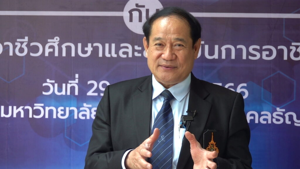 รศ.ดร.สมหมาย ผิวสอาด อธิการบดี มทร.ธัญบุรี กล่าวว่า งานในวันนี้นับว่าเป็นเกียรติกับ มทร.ธัญบุรี อย่างยิ่ง ที่ได้ลงนามความร่วมมือกับ สถาบันการอาชีวศึกษา และสถาบันการอาชีวศึกษาเกษตรทั้ง 23 สถาบัน โดยที่สำนักงานคณะกรรมการอาชีวศึกษาได้ให้เกียรติกับเราที่จะพัฒนาบุคลากรร่วมกัน มีโครงการใหญ่ ๆ ที่เกิดขึ้นจริง ๆ วันนี้ได้ทำอย่างเป็นทาง ในเรื่องแรกเป็นเรื่องของการโอกาสให้บุคลากรของสถาบันการ อาชีวศึกษา อาจารย์ได้พัฒนาความรู้ พัฒนาคุณวุฒิสูงขึ้นไป ทั้งระดับปริญญาโท ระดับปริญญาเอก นอกจาก นั้นยังมีโครงการอบรมในเรื่ององค์ความรู้ใหม่ ๆ ที่เกิดขึ้นก็จะมีการถ่ายทอดร่วมกัน และเปิดโอกาสให้นักเรียนนักศึกษาสถาบันการอาชีวศึกษา ทั้งวิทยาลัยเทคนิค วิทยาลัยอาชีวศึกษา และหน่วยงานอื่น ๆ ที่จะสามารถได้มามีโอกาสมาศึกษาต่อที่มหาวิทยาลัยเทคโนโลยีราชมงคลธัญบุรี และยังร่วมกันที่จะมีโครงการที่จะนำ ความรู้ นำทักษะ ความเชี่ยวชาญของเราที่จะยกระดับขีดความสามารถของสถานประกอบการ ทั้งภาคอุตสาหกรรม ภาคการเกษตร ภาคการบริการ ที่จะยกระดับโดยใช้ความรู้ของอาจารย์และนักศึกษาเราไปช่วยกันพัฒนา ที่สำคัญที่สุดก็คือ เราจะร่วมกันผลิตบัณฑิต หรือผู้สำเร็จการศึกษาออกมามีคุณภาพและตรงกับแนวทางในการพัฒนาประเทศ ตรงกับความต้องการของสถานประกอบการ.