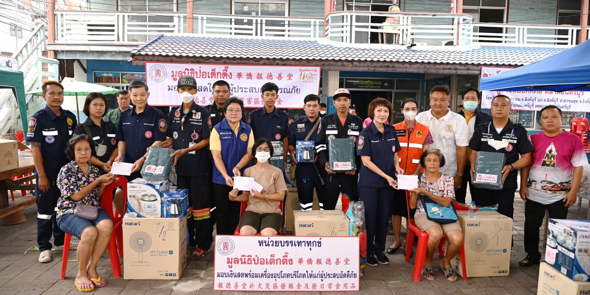 วันนี้ (วันอังคารที่ 29 สิงหาคม 2566 ) มูลนิธิป่อเต็กตึ๊ง นำโดย นายวิชิต ชินวงศ์วรกุล รองประธานกรรมการ พร้อมด้วยนางศิริกุล โอภาสวงศ์ กรรมการและเลขาธิการ และนางสาวดวงชุตา ติยะพจนพรกุล ผู้ช่วยผู้จัดการฝ่ายสังคมสงเคราะห์ นำทีมลงพื้นที่ให้ความช่วยเหลือผู้ประสบอัคคีภัยบริเวณชุมชนตลาดเทศบาลตำบลอินทร์บุรี จังหวัดสิงห์บุรี จำนวน16 ครอบครัว 34 คน โดยมอบเงินสดคนละ 3,000 บาท พร้อมมอบเครื่องอุปโภคบริโภครายครอบครัว 8 ชุด รายบุคคล 8 ชุด คิดเป็นมูลค่าการช่วยเหลือทั้งสิ้น 134,000 บาท (หนึ่งแสนสามหมื่นสี่พันบาทถ้วน) โดยมี นายศิริลักษณ์ เหมาะพิชัย นายอำเภออินทร์บุรี พร้อมด้วย นางสาวนงเยาว์ เทพศิริ หัวหน้าสำนักงานป้องกันและบรรเทาสาธารณภัยจังหวัดสิงห์บุรี ร่วมในพิธี ณ บริเวณชุมชนตลาดเทศบาลตำบลอินทร์บุรี อำเภออินทร์บุรี จังหวัดสิงห์บุรี