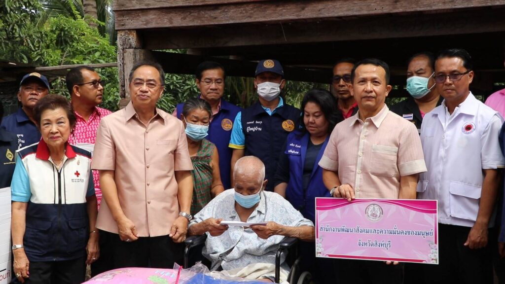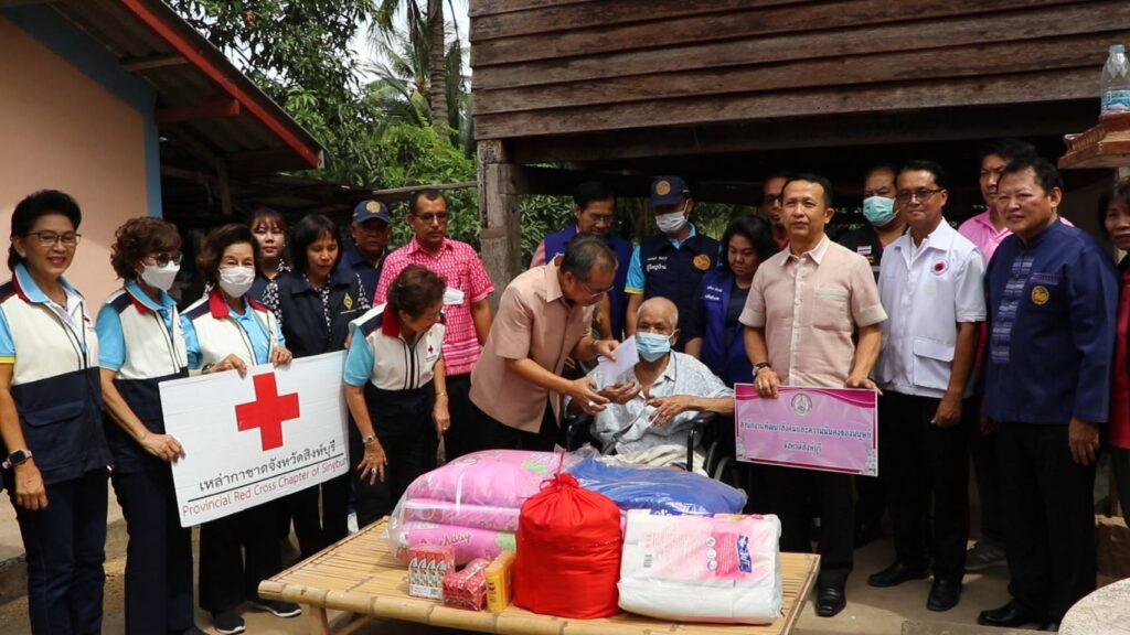 นายสุพจน์ ยศสิงห์คำ ผู้ว่าราชการจังหวัดสิงห์บุรี ในฐานะนายกเหล่ากาชาดจังหวัดสิงห์บุรี พร้อมปลัดจังหวัดสิงห์บุรี นายอำเภอค่ายบางระจัน เหล่ากาชาดจังหวัดสิงห์บุรี พัฒนาสังคมและความมั่นคงของมนุษย์จังหวัดสิงห์บุรี ชมรมแม่บ้านมหาดไทย หัวหน้าส่วนราชการ สาธารณสุขอำเภอค่ายบางระจัน กำนันและผู้ใหญ่บ้าน เดินทางไปตรวจเยี่ยมให้กำลังใจบ้านผู้สูงอายุ คนพิการ ผู้ด้อยโอกาส ในพื้นที่อำเภอค่ายบางระจัน จำนวน 3 ราย ได้มอบเครื่องอุปโภคบริโภค รายละ 1 ชุด พร้อมเงินช่วยเหลือและปรับปรุงซ่อมแซมบ้านที่อยู่อาศัยให้มีสภาพความเป็นอยู่ที่ดีขึ้น เพื่อสร้างขวัญกำลังใจให้กับผู้สูงอายุ ผู้พิการ ผู้ป่วยติดเตียงและผู้ด้อยโอกาสให้ดำรงชีวิตต่อไปอย่างมีความสุข
