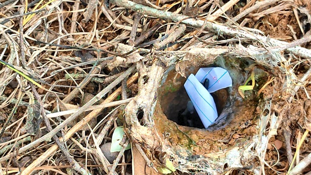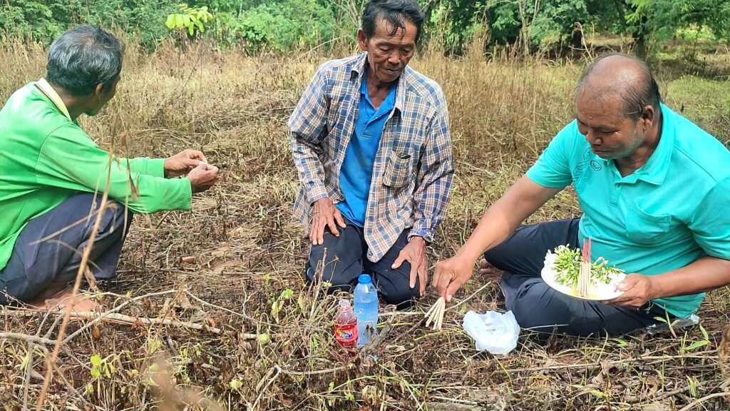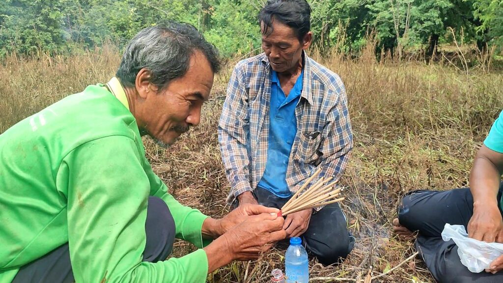 เมื่อไปถึงพบกับนายทองใส บรรดาศักดิ์ อายุ59ปี อยู่บ้านเลขที่ 25 หมู่ 7 บ้านวังไทรทอง ตำบลซับเปิบ อำเภอวังโป่ง จังหวัดเพชรบูรณ์ พร้อมด้วยเพื่อนบ้าน ต่างกำลังช่วยกัน นำกระดาษ ปากกา มาเขียนตัวเลขเรียงลำดับจาก 0 – 9 ขึ้นมาทั้งหมด 3 ชุดด้วยกัน จากนั้นม้วนกระดาษที่เขียนตัวเลข และหย่อนลงไปปากรูของ “รังพญาบึ้ง”ทั้ง2รู จากนั้นได้จัดเตรียมเครื่องเซ่นไหว้ แต่งขันธ์5 บูชาบอกกล่าว สิ่งศักดิ์สิทธิ์ เจ้าที่เจ้าทาง ขอโชคขอลาภ ให้สมดังปรารถนา เมื่ออธิฐานเสร็จก็ถอยออกมานั่งห่าง ๆ เวลาผ่านไปไม่ถึงชั่วโมงเจ้าตัวบึ้งก็ดันกระดาษที่เขียนตัวเลขออกมาจากรูพร้อมกันที่เดียวจำนวนสามใบ และขณะที่ชาวบ้านกำลังตื่นเต้นอยู่กับตัวเลขพญาบึ้งรูที่ 1 นั้น ปรากฏว่า พญาบึ้งที่อยู่ในรูที่2 ก็ได้คาบกระดาษตัวเลขออกมาจากรูจำนวนสองใบต่อหน้าต่อตาชาวบ้าน ต่างพากันตื่นเต้นดีใจหยิบโทรศัพท์มาถ่ายรูปเก็บไว้ดู ถือเป็นบุญตาและหาดูได้ยากยิ่งนักที่จะได้เห็นพฤติกรรมของพญาบึ้งเช่นนี้ โดย พญาบึ้งรูแรกที่ให้ตัวเลขทั้งหมด 3 ใบ เปิดดูตัวเลข ได้ 6 3 0 และพญาบึ้ง ตัวที่2 คาบกระดาษขึ้นมาเปิดดูเป็นเลข 9 5 สร้างความดีใจแก่ชาวบ้านและคอหวยเป็นอย่างมาก โดยเฉพาะเลข 30 ซึ่งตรงกับเลขนายกรัฐมนตรีคนที่ 30 พอดี จึงเตรียมนำตัวเลขที่ได้ ไปเสี่ยงโชคช่วงโค้งสุดท้าย ก่อนหวยออก ตามความเชื่อต่อไป