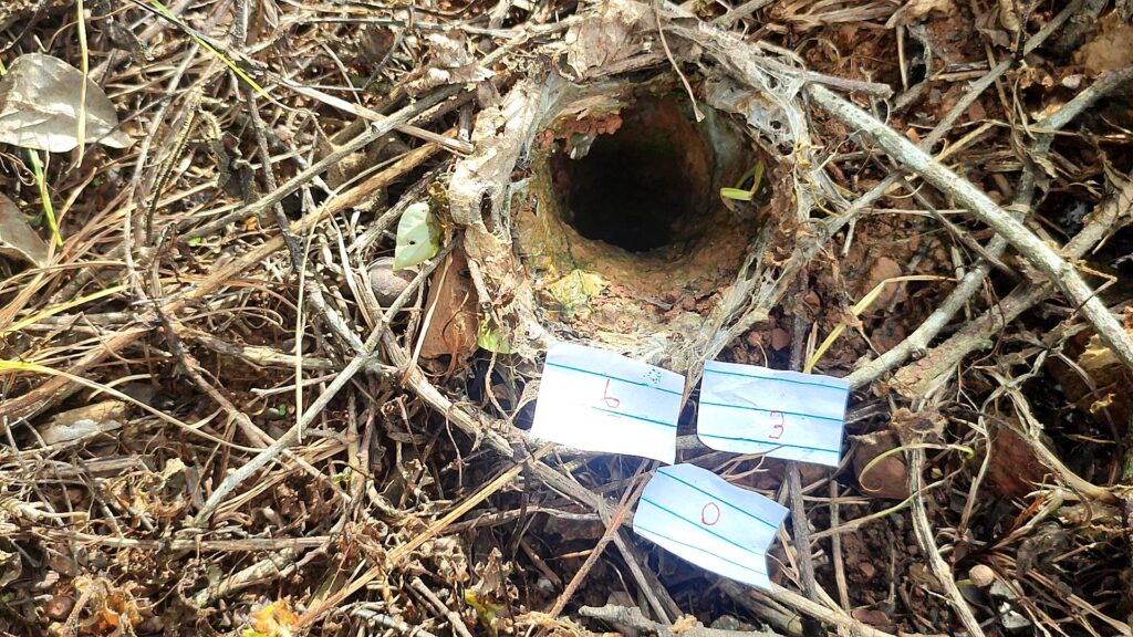 สอบถาม นายสมบูรณ์ บุตรสุ่ย อายุ65 ปี เจ้าของสวนมะขามหวาน เปิดเผยว่า ช่วงนี้ ฝนแล้งจึงออกมาดูสวนมะขามหวานออกผลผลิตตามทุกปีหรือเปล่า ขณะที่ตน กำลังเดินมองดูพื้นที่ ก็มองไปเห็นรูบึ้งแต่ไกล ซึ่งมีขนาดปากรูที่ใหญ่ผิดปกติ จึงเดินเข้าไปดูใกล้ๆ ก็มั่นใจว่า เป็นรูพญาบึ้งแน่นอน และที่สำคัญ ยังหันปากรูไปทางทิศตะวันออกทั้งสองรูซึ่งตรงตามตำราโบราณที่ผู้เฒ่าผู้แก่บอกเล่าต่อกันมาว่าจะให้โชคแก่ผู้พบเห็น จึงชักชวนเพื่อนบ้าน มาทำพิธีขอเลขเด็กจากพญาบึ้งที่ 2 รูในครั้งนี้