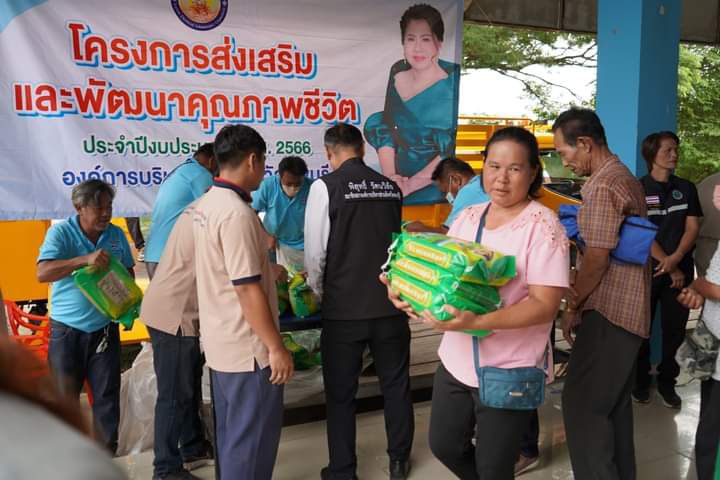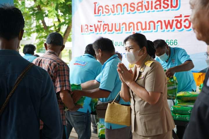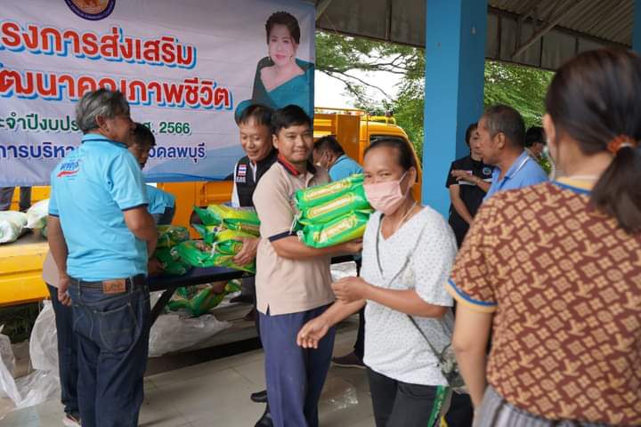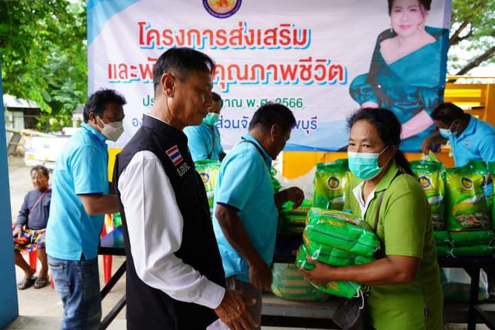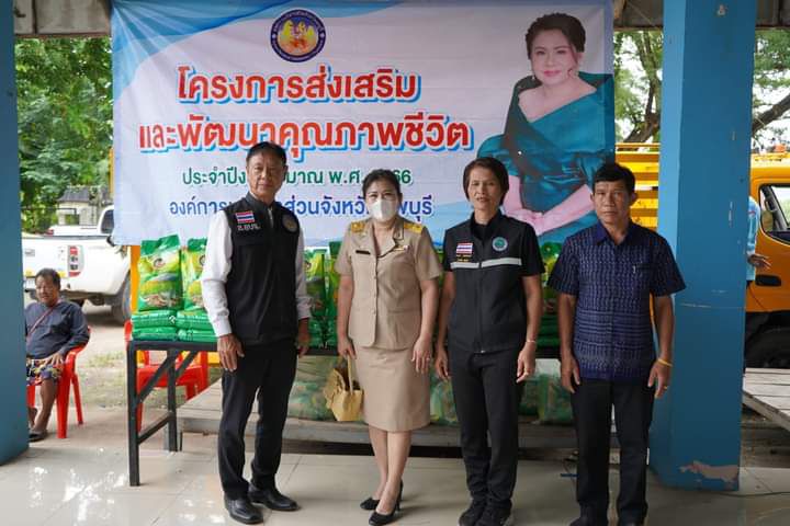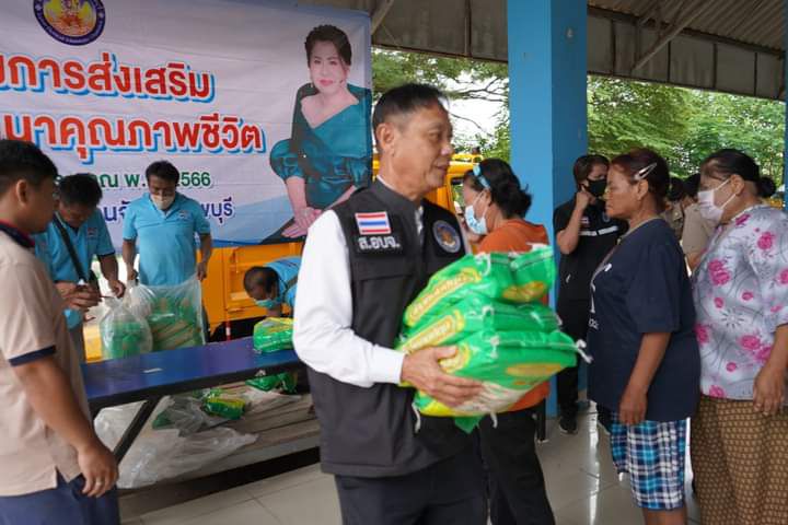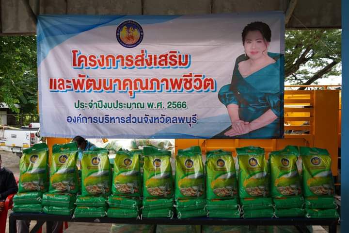 วันที่ 31 สิงหาคม 2566 เวลา 09.30 น. ณ องค์การบริหารส่วนตำบลชอนสมบูรณ์ อำเภอหนองม่วงจังหวัดลพบุรี นางอรพิน จิระพันธุ์วาณิช นายกองค์การบริหารส่วนจังหวัดลพบุรี ในฐานะคณะกรรมการบริหารศูนย์อำนวยการขจัดความยากจนและพัฒนาคนทุกช่วงวัยอย่างยั่งยืน ตามหลักปรัชญาเศรษฐกิจพอเพียงจังหวัด (คจพ.จ) ลงพื้นที่องค์การบริหารส่วนตำบลชอนสมบูรณ์ มอบเครื่องบริโภค (ข้าวสาร) ช่วยเหลือประชาชนที่มีรายได้น้อยในพื้นที่จังหวัดลพบุรี ตามโครงการส่งเสริมและพัฒนาคุณภาพชีวิตขององค์การบริหารส่วนจังหวัดลพบุรี เพื่อเป็นการส่งเสริมพัฒนาคุณภาพชีวิตและบรรเทาความเดือดร้อนให้แก่ประชาชนในพื้นที่อำเภอหนองม่วง ทั้งนี้โครงการดังกล่าวจะดำเนินการทั้ง 11 อำเภอในจังหวัดลพบุรี ระหว่างวันที่ 21 สิงหาคม พ.ศ. 2566 ถึงวันที่ 6 กันยายน พ.ศ. 2566