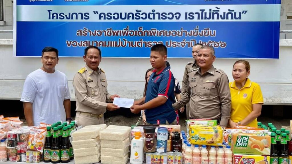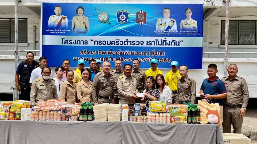 เมื่อวันที่ 31 สิงหาคม 2566 เวลา 11.30 น. ที่ผ่านมา พล.ต.ท.อิทธิพล อิทธิสารรณชัย ผบช.ภ.2 , พล.ต.ต.สุรจิต ชิงนวรรณ์ รอง ผบช.ภ.2 , พ.ต.อ.จักรพันธุ์ กิตติสิริพรกุล รอง ผบก.ภ.จว.ชลบุรี , พ.ต.อ.คมน์สร มาบำรุง รอง ผบก.ภ.จว.ชลบุรี , พ.ต.อ.ปพนพัชร์ ใบยา ผกก.สภ.แหลมฉบัง พร้อม กต.ตร.สภ.แหลมฉบัง และชมรมแม่บ้านตำรวจ ภ.จว.ชลบุรี ร่วมกับ ชมรมแม่บ้าน ภ.2 โดยคุณเกตุแก้ว อิทธิสารรณชัย ประธานชมรมแม่บ้าน ภ.2 และคณะแม่บ้าน ภ.2 ร่วมมอบเงินช่วยเหลือและสิ่งของอุปโภคบริโภคแก่เด็กพิเศษที่เป็นบุตรของข้าราชการตำรวจ สภ.แหลมฉบัง จำนวน 2 ราย ตามโครงการ “ครอบครัวตำรวจ เราไม่ทิ้งกัน” สร้างอาชีพเพื่อเด็กพิเศษอย่างยั่งยืน ของสมาคมแม่บ้านตำรวจ ประจำปี 2566 ณ บริเวณหน้าบ้านพักข้าราชการตำรวจ สภ.แหลมฉบัง