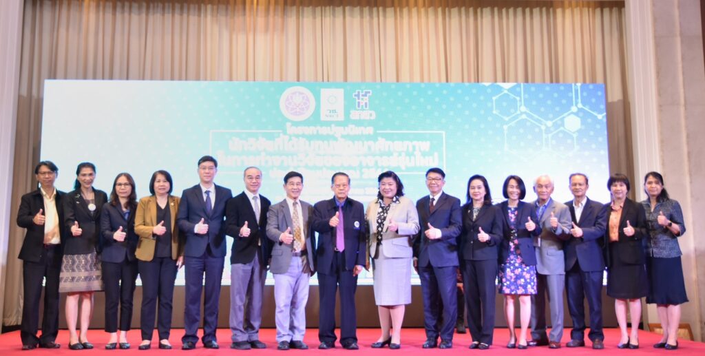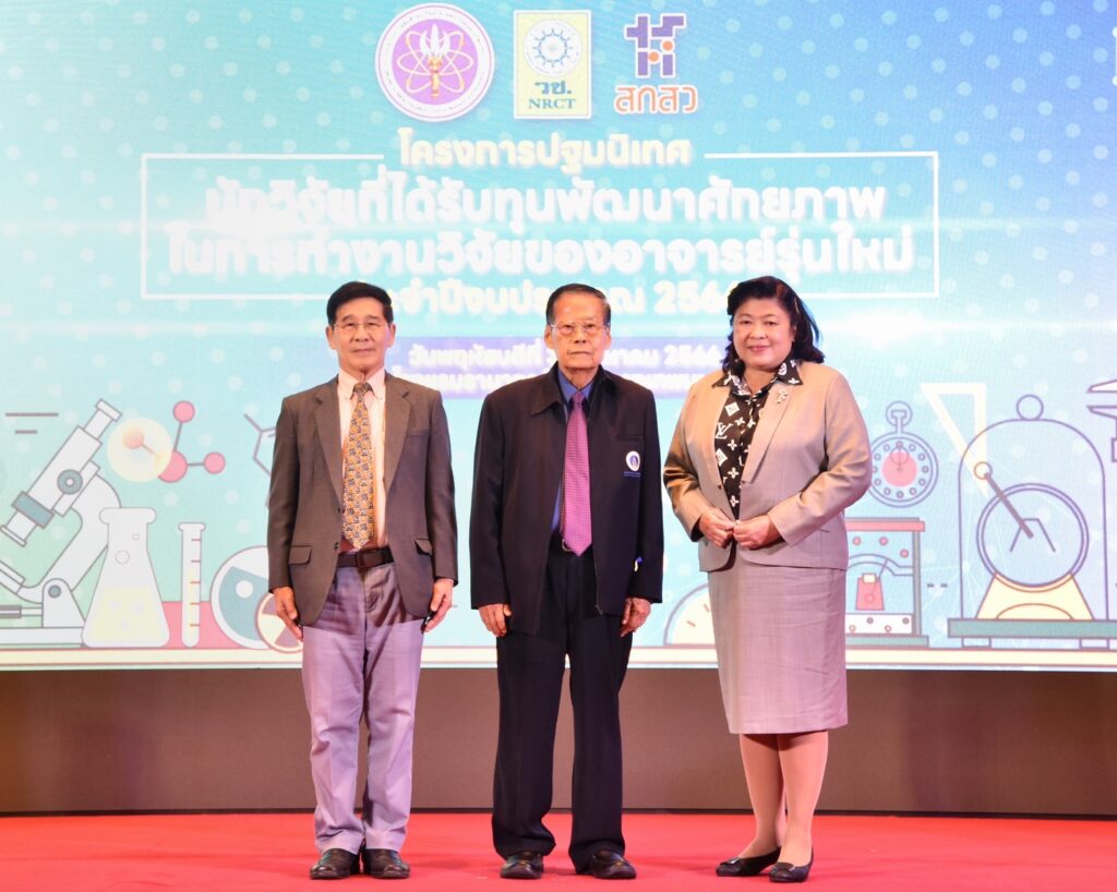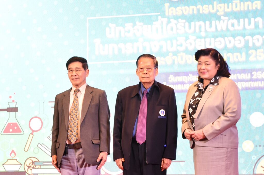 เมื่อวันที่ 31 สิงหาคม 2566 สำนักงานการวิจัยแห่งชาติ (วช.) กระทรวงการอุดมศึกษา วิทยาศาสตร์ วิจัยและนวัตกรรม (อว.) จัดโครงการ “ปฐมนิเทศผู้ที่ได้รับทุนพัฒนาศักยภาพในการทำงานวิจัยของอาจารย์รุ่นใหม่ ประจำปีงบประมาณ 2566” เพื่อให้นักวิจัยรุ่นใหม่ตระหนักถึงความสำคัญในการพัฒนาศักยภาพในการทำงานวิจัยของอาจารย์รุ่นใหม่ในสถาบันอุดมศึกษาระดับปริญญาในประเทศไทย มีโอกาสได้ทำงานวิจัยอย่างต่อเนื่อง สร้างสมประสบการณ์ และพัฒนาไปสู่การเป็นนักวิจัยที่มีคุณภาพระดับสูงของประเทศ โดยมี ศ.เกียรติคุณ ดร.วิชัย ริ้วตระกูล ประธานคณะกรรมการบริหารโครงการทุนพัฒนาศักยภาพในการทำงานวิจัยของอาจารย์รุ่นใหม่ เป็นประธานเปิดการปฐมนิเทศ และได้รับเกียรติจาก ศ.กิตติคุณ นพ.สุทธิพร จิตต์มิตรภาพ ประธานกรรมการส่งเสริมวิทยาศาสตร์ วิจัยและนวัตกรรม (กสว.) มาบรรยายพิเศษ เรื่อง “ทิศทางการส่งเสริมและพัฒนานักวิจัยรุ่นใหม่ในระบบ (ววน.) ของประเทศ” พร้อมนี้ ดร.วิภารัตน์ ดีอ่อง ผู้อำนวยการสำนักงานการวิจัยแห่งชาติ (ผอ.วช.) พร้อมด้วย คณะผู้บริหาร (วช.) และผู้ทรงคุณวุฒิ ให้การต้อนรับ ณ ห้องแกรนด์บอลรูม โรงแรมรามาการ์เด้นส์ กรุงเทพมหานคร