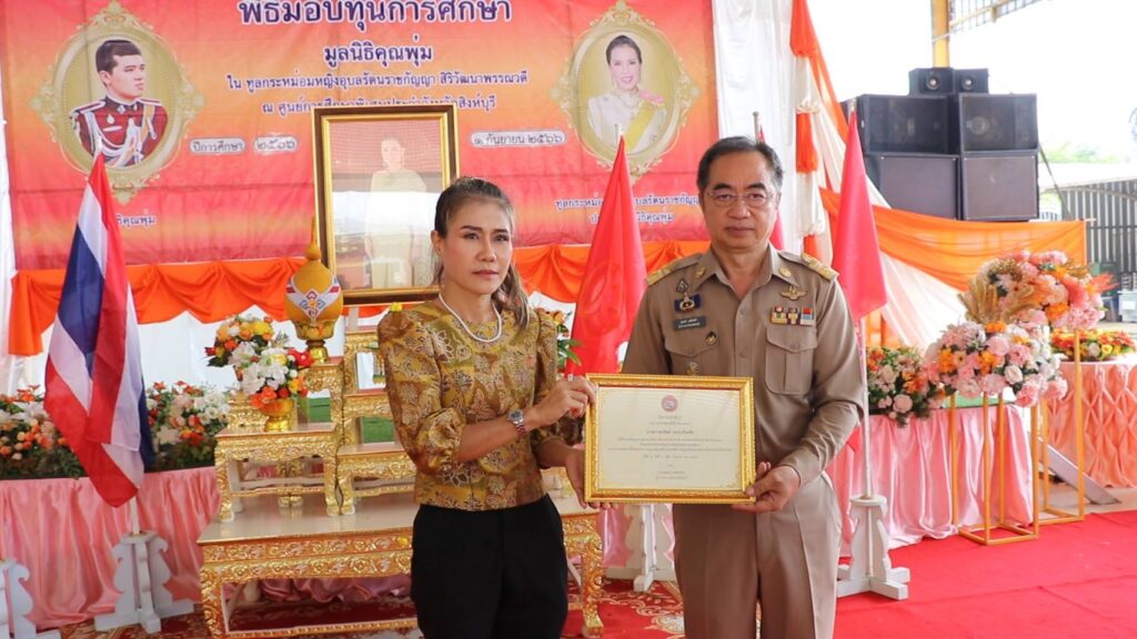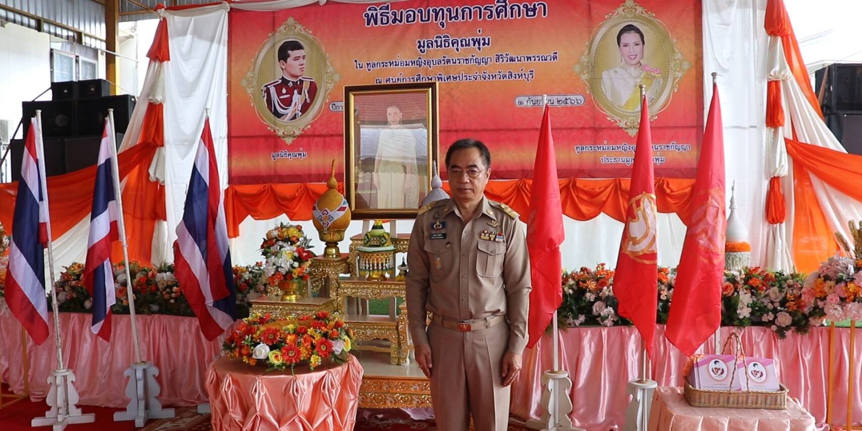 วันศุกร์ที่ ๑ กันยายน ๒๕๖๖ เวลา ๐๙.๓๐ น. นายสุพจน์ ยศสิงห์คำ ผู้ว่าราชการจังหวัดสิงห์บุรี เป็นประธานในพิธีมอบทุนการศึกษาสำหรับเด็กออทิสติกและเด็กพิการในมูลนิธิคุณพุ่ม ปีการศึกษา ๒๕๖๖ ณ อาคารเอนกประสงค์ ศูนย์การศึกษาพิเศษประจำจังหวัดสิงห์บุรี ตำบลม่วงหมู่ อำเภอเมืองสิงห์บุรี โดยมีพระราชวชิราภิรม เจ้าอาวาสวัดศรัทธาภิรม พระญาณดิลก เจ้าคณะอำเภอปากช่องจังหวัดนครราชสีมา พระครูวิชิตวุฒิคุณ เจ้าคณะอำเภอบางระจัน นายสัมฤทธิ์ กองเงิน พร้อมนายวราดิศร อ่อนนุช รองผู้ว่าราชการจังหวัดสิงห์บุรีทั้งสอง ผู้อำนวยการศูนย์การศึกษาพิเศษประจำจังหวัดสิงห์บุรี นายอำเภอเมืองสิงห์บุรี รองนายกเหล่ากาชาดจังหวัดสิงห์บุรี ผู้บริหารท้องถิ่น ผู้บริหารสถานศึกษา คณะครูและผู้ปกครองของนักเรียนร่วมในพิธีมอบทุนการศึกษาทูลกระหม่อมหญิงอุบลรัตนราชกัญญา สิริวัฒนาพรรณวดี ได้ทรงมีพระเมตตาประทานทุนให้เด็กพิการที่มีฐานะยากจน และขาดโอกาสในการพัฒนาคุณภาพชีวิตจำนวน 100 ทุน ทุนละ 5,000 บาทรวมเป็นเงิน 500,000 บาท และทุนพิเศษจำนวน 15 ทุน เพื่อช่วยแบ่งเบาภาระของผู้ปกครองรวมทั้งให้เด็กออทิสติก และเด็กพิการ ได้นำไปใช้ให้เกิดประโยชน์อย่างคุ้มค่าที่สุด ผู้ปกครองของเด็กที่ได้รับประทานทุนการศึกษาในครั้งนี้ ต่างสำนึกในพระกรุณาธิคุณ และจะนำทุนที่ได้รับ ไปใช้ให้เกิดประโยชน์อย่างคุ้มค่าสูงสุด ในการพัฒนาศักยภาพเด็กผู้พิการด้านต่าง ๆ ให้สามารถอยู่ร่วมกับคนปกติในสังคมได้อย่างมีความสุข และบรรลุตามวัตถุประสงค์ของมูลนิธิคุณพุ่มต่อไป