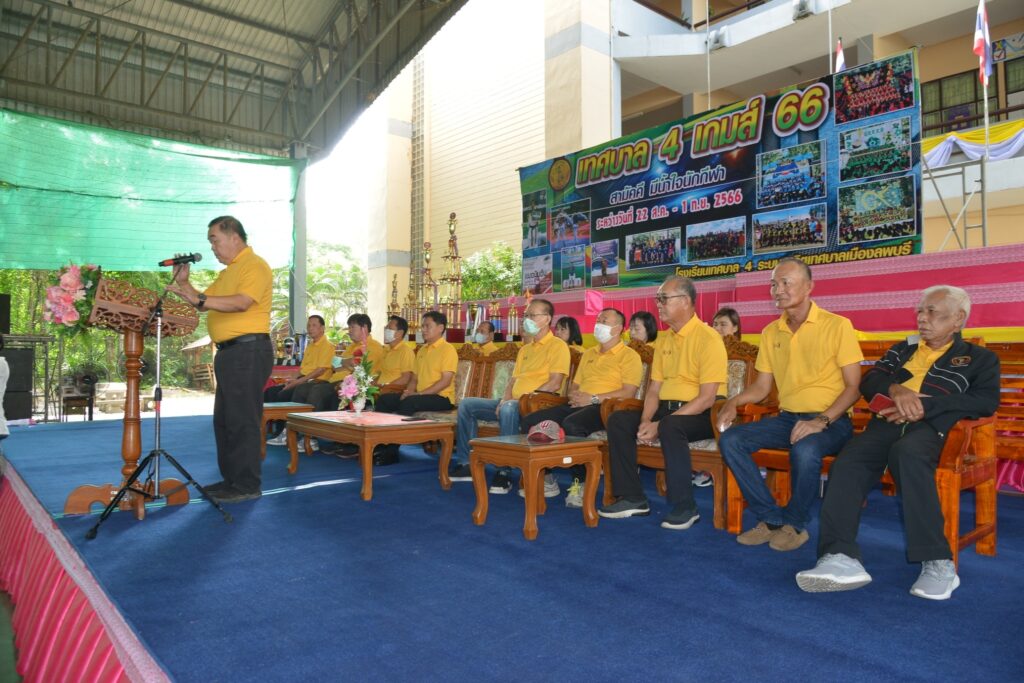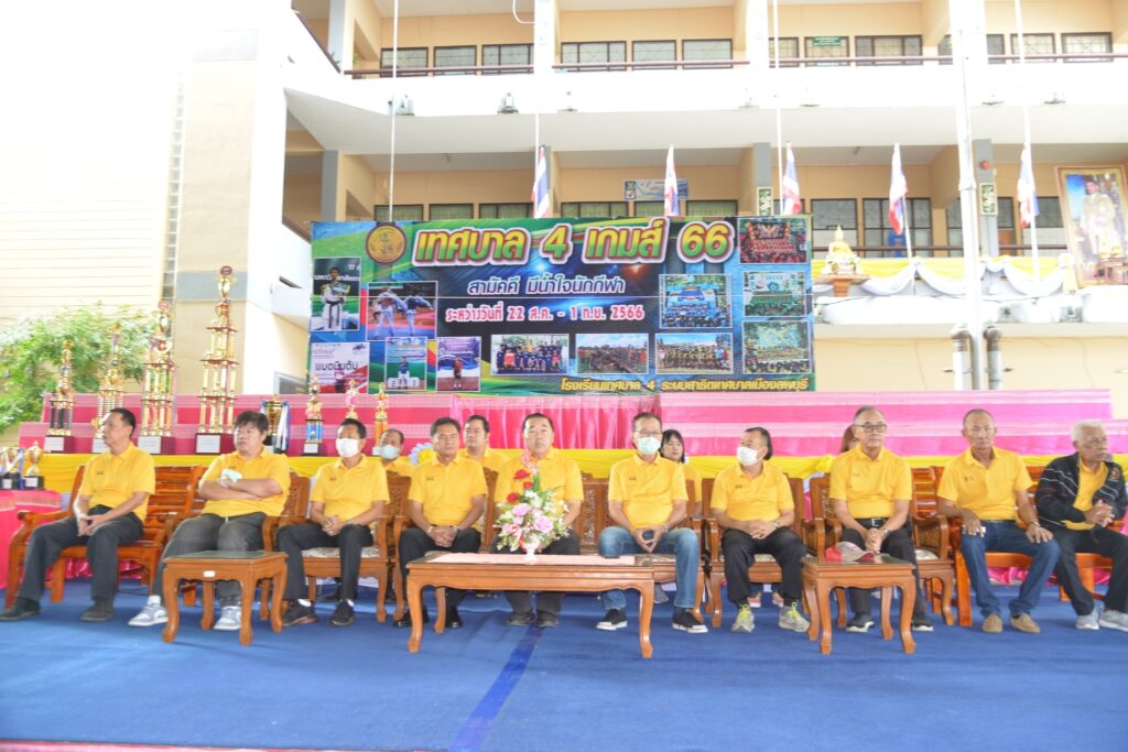 นายจำเริญ สละชีพ นายกเทศมนตรีเมืองลพบุรี มอบให้ นายสันธนะ บัวชาติ รองนายกเทศมนตรีเมืองลพบุรี เป็นประธานเปิดการแข่งขันกีฬาสีภายในของโรงเรียนเทศบาล ๔ ระบบสาธิตเทศบาลเมืองลพบุรี “เทศบาล ๔ เกมส์ ๖๖” โดยมี นายสมชัย อินปุระ รองนายกเทศมนตรีเมืองลพบุรี นายอนุสรณ์ อัศวสงคราม นายสมชัย เตือนวชาติ เลขานุการนายกเทศมนตรีเมืองลพบุรี นายสุรโชติ โชคชัย ประธานสภาเทศบาลเมืองลพบุรี นายนิติธร เดชรังสฤษฏ์ ประธานคณะกรรมการสถานศึกษา นายนิทัศน์ ต้นจันทน์ ปลัดเทศบาลเมืองลพบุรี หัวหน้าส่วนราชการ แขกผู้มีเกียรติ คณะครู นักเรียน โรงเรียนเทศบาล ๔ ระบบสาธิตเทศบาลเมืองลพบุรี เข้าร่วมในพิธีเปิดแข่งขันกีฬาสีภายในฯ โดยการจัดการแข่งขันกีฬาในครั้งนี้ เป็นส่วนหนึ่งของการจัดกิจกรรมการเรียนรู้ กลุ่มสาระการเรียนรู้วิชาสุขศึกษาและพลศึกษา โดยมีวัตถุประสงค์ เพื่อส่งเสริมให้นักเรียนใช้เวลาว่างให้เกิดประโยชน์ เพื่อส่งเสริมให้นักเรียนมีสุขภาพแข็งแรงสมบูรณ์ เพื่อส่งเสริมความมีระเบียบวินัยและรู้รักสามัคคี เพื่อส่งเสริมให้นักเรียนมีน้ำใจนักกีฬา รู้แพ้ รู้ชนะ รู้อภัย เพื่อส่งเสริมให้นักเรียนรักการออกกำลังกาย และพัฒนาความสามารถด้านกีฬา เพื่อคัดเลือกตัวแทนนักกีฬาที่มีความสามารถด้านกีฬาไปแข่งขันในระดับสูงต่อไป