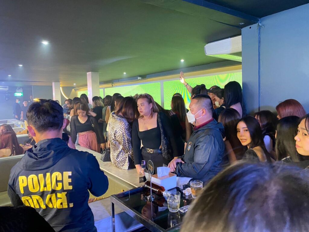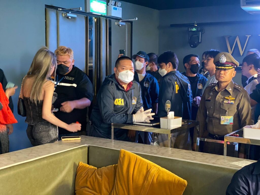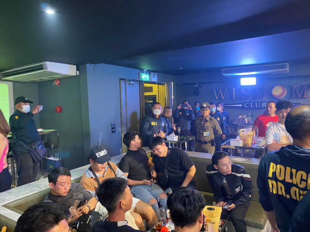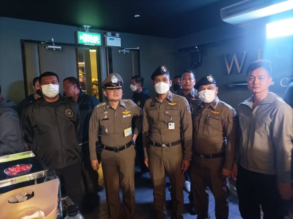 ต่อมาเวลา 03.00 น. เจ้าหน้าที่ตำรวจชุดจับกุมได้เข้าทำการตรวจค้นสถานบริการเลขที่ 150/1 ซ.ลาดพร้าว 122 แขวงพลับพลา เขตวังทองหลาง กรุงเทพฯ ผลการตรวจค้นพบประชาชนและนักท่องเที่ยวกำลังใช้บริการอยู่เป็นจำนวนมากมีเครื่องดื่มแอลกอฮอล์ตามโต๊ะต่างๆ จึงได้ทำการตรวจสอบสารเสพติดในร่างกายนักท่องเที่ยวและพนักงานในร้านทั้งหมด 216 ราย แบ่งเป็น ชาย 150 ราย หญิง 66 รายไม่พบสารเสพติดแต่อย่างใด