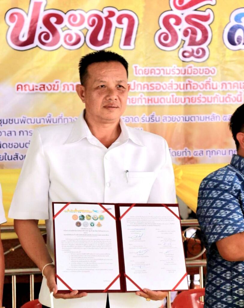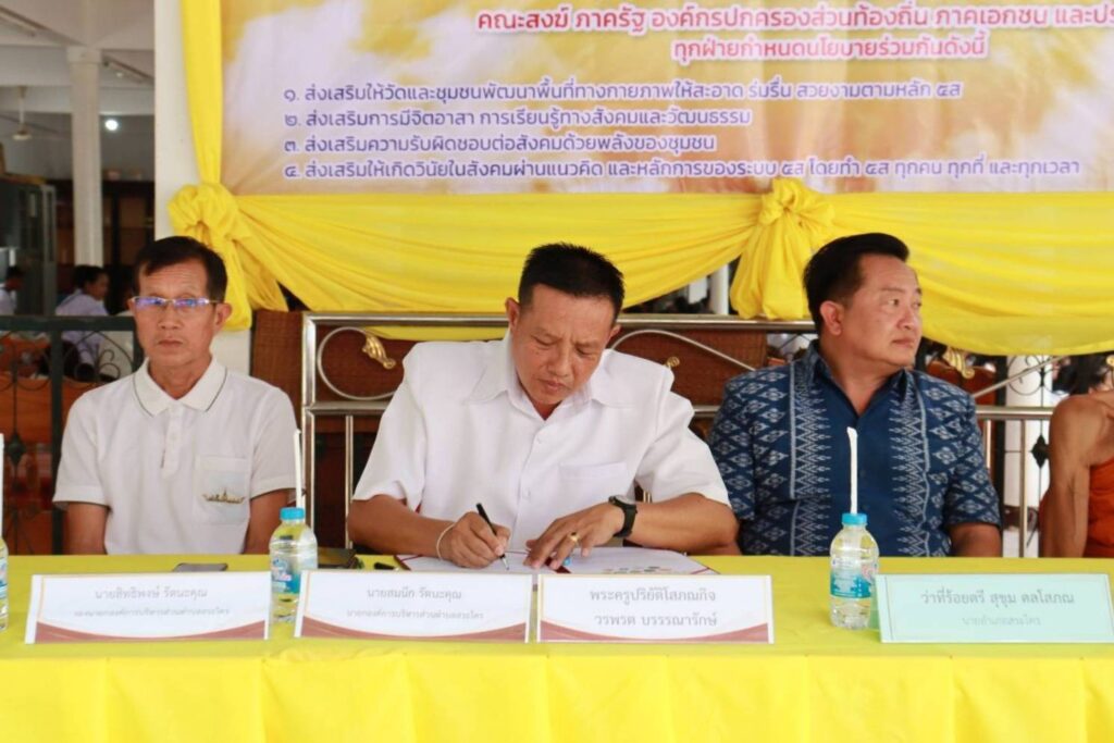 เมื่อวันพฤหัสบดีที่ 31 สิงหาคม 2566 เวลา 11.00 น. : องค์การบริหารส่วนตำบลสระใคร โดยนายสมนึก รัตนะคุณนายกองค์การบริหารส่วนตำบลสระใคร พร้อมด้วย คณะผู้บริหาร ปลัด อบต.รองปลัด อบต.หัวหน้าส่วนราชการ ได้ร่วมลงนามบันทึกข้อตกลงความร่วมมือ MOU โครงการวัดประชารัฐสร้างสุข “ระดับปฏิบัติการเชิงพื้นที่ ระยะ 5 ปี “(พ.ศ. 2566-2570) ณ ศาลาการเปรียญวัดโพนงาม หมู่ที่ 3 ตำบลสระใคร อำเภอสระใคร จังหวัดหนองคาย