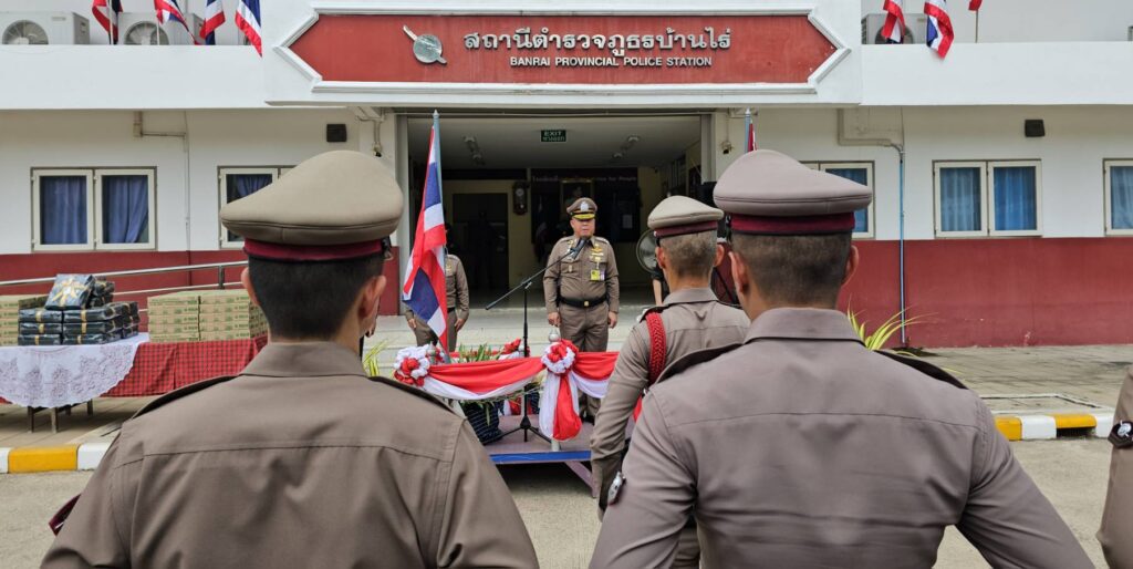 พ.ต.อ.ศราวุธ สวัสดิชัย รอง ผบก.สส.ภ.6(หน.สนง.ผบช.ภ.6) และคณะ ได้มาตรวจเยี่ยมบำรุงขวัญและมอบสิ่งของอุปโภค บริโภค พร้อมเงิน จำนวน 10,000 บาท ให้แก่ข้าราชการตำรวจ สภ.บ้านไร่ และได้ประชุมเร่งรัดติดตามคดีฆ่า นางจำรุณ คงคาลัย เสียชีวิต