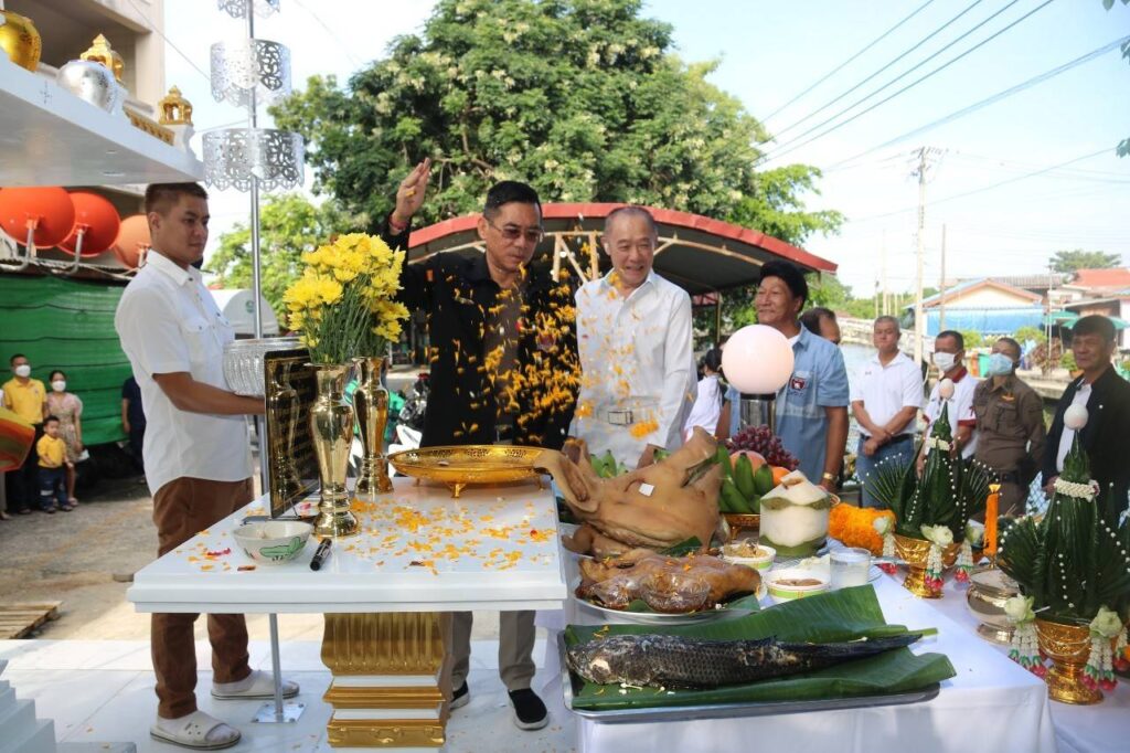 คุณรัฐพล อ่ำสะอาด ประธาน กต.ตร.สน.บางเสาธง และ พ.ต.อ.ศุภศักดิ์ โปรียานนท์ ผกก.สน.บางเสาธง ร่วมจัดสร้างพระโดย สน.บางเสาธง