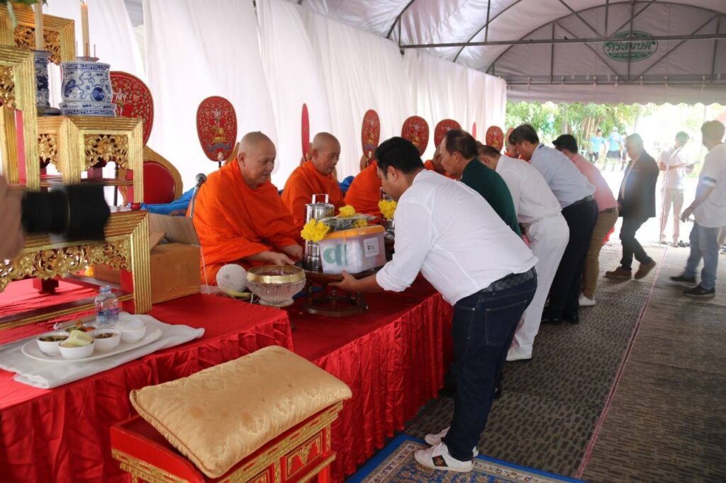และมวลสารลงในเบ้าหลอม พระสงฆ์เจริญชัยมงคลคาถา เวลา 10.34 น. ประธานและคณะถวายจตุปัจจัยและไทยธรวม แด่พระสงฆ์ และกรวดน้ำรับพร เสร็จพิธี