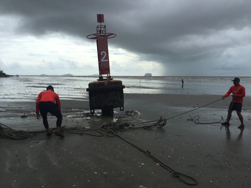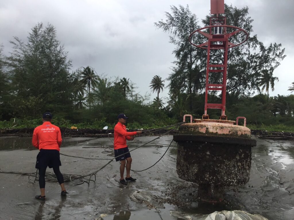 วันนี้ 4 กันยายน 2566 นาวาเอกแสนย์ไท บัวเนียม รองผู้อำนวยการศูนย์อำนวยการรักษาผลประโยชน์ของชาติทางทะเลจังหวัดสตูล ได้รับแจ้งว่ากระชังหอยแมลงภู่ ของชาวบ้าน ที่เลี้ยงอยู่ในคลองละงู หมู่ที่ 2 บ้านทอนไก่ ตำบลแหลมสน อำเภอละงู จังหวัดสตูล ถูกกระแสน้ำพัด เสาสมอขาดทำให้กระชังหลุดลอยตามน้ำออกสู่ทะเลจึงมอบหมายให้ นาวาตรีปรัชญ์ ขำเจริญ หัวหน้าสถานีเรือละงู/ ผู้บังคับหน่วยรักษาความปลอดภัยทางทะเลเกาะหลีเป๊ะ จัดกำลังพลพร้อมเรือยางออกให้ความช่วยเหลือ ลากกระชังหอยผูกยึดไว้กับหลักกระโจมไฟบริเวณปากร่องน้ำคลองละงู ห่างจากจุดที่กระชังขาดเป็นระยะทางประมาณ 2 กม. พร้อมนัดหมาย จะทำการลากกระชังกลับภูมลำเนา เมื่อระดับน้ำเริ่มขึ้นในเวลา 19.00 น.