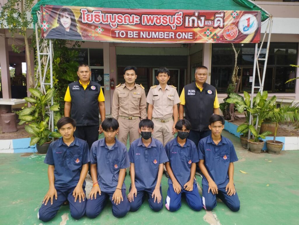โรงเรียนโยธินบูรณะ เพชรบุรี ที่อยู่เลขที่ 72 หมู่ที่ 4 ต.สระพัง อ.เขาย้อย จ.เพชรบุรี โดยมี นายสิทธิชัย พลายแดง ผู้อำนวยการโรงเรียนโยธินบูรณะ เพชรบุรี ให้การต้อนรับ