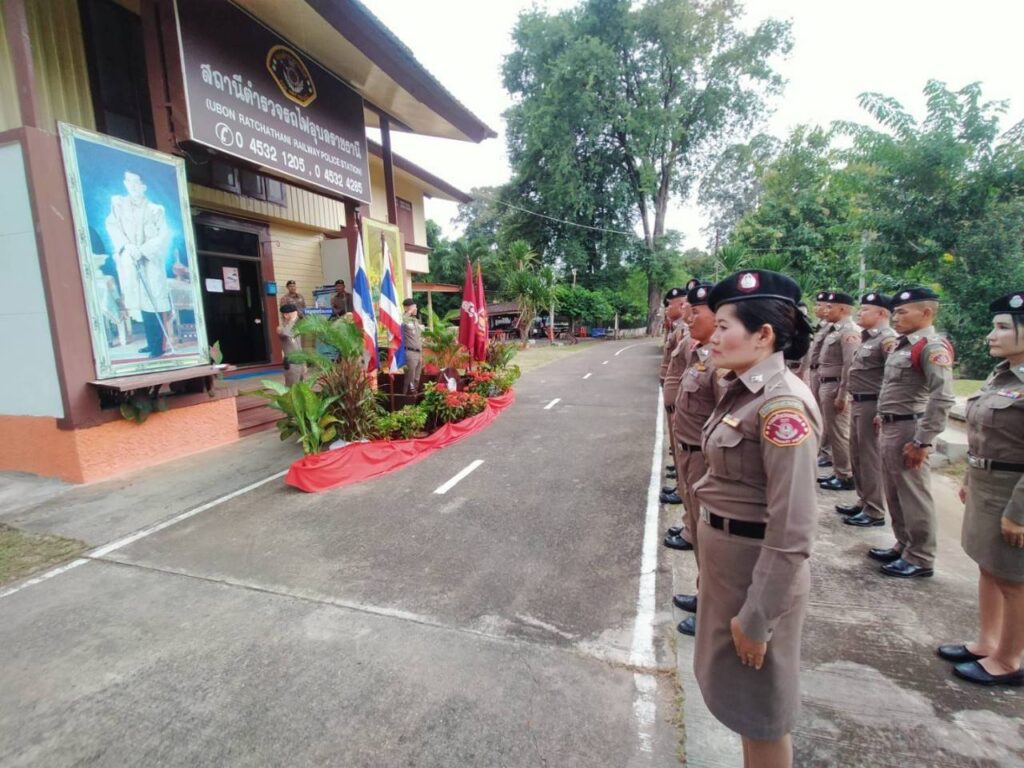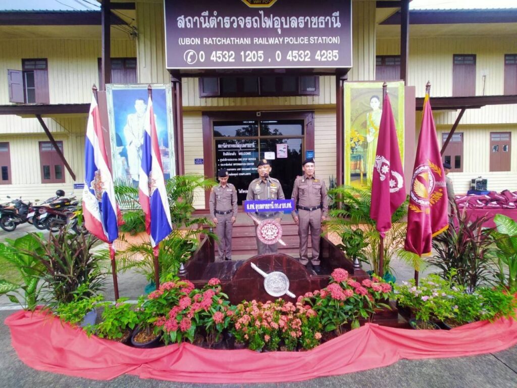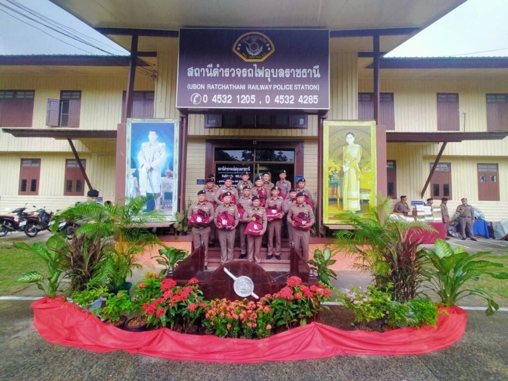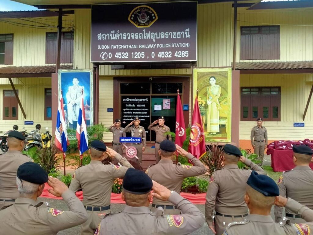 โดยมี ว่าที่ พ.ต.ท. มงคล สง่าโฉม สว.ส.รฟ. อุบลราชธานี กก.๕ บก.รฟ. และข้าราชการตำรวจในสังกัดเข้าร่วมให้การต้อนรับ ณ ส.รฟ.อุบลราชธานี กก.๕ บก.รฟ.
