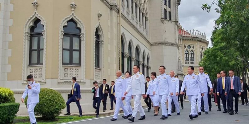 วันนี้ 5 กันยายน 2566 รัฐมนตรีสัดส่วนของพรรคภูมิใจไทย ได้แก่ นายอนุทิน ชาญวีรกูล รองนายกรัฐมนตรีและรัฐมนตรีว่าการกระทรวงมหาดไทย, พล.ต.อ.เพิ่มพูน ชิดชอบ รัฐมนตรีว่าการกระทรวงศึกษาธิการ, นายพิพัฒน์ รัชกิจประการ เป็นรัฐมนตรีว่าการกระทรวงแรงงาน, นางสาวศุภมาศ อิสรภักดี รัฐมนตรีว่าการกระทรวงการอุดมศึกษาวิทยาศาสตร์ วิจัยและนวัตกรรม (อว.), นายนภินทร ศรีสรรพางค์ รัฐมนตรีช่วยว่าการกระทรวงพาณิชย์, นายชาดา ไทยเศรษฐ์ และนายทรงศักดิ์ ทองศรี รัฐมนตรีช่วยว่าการกระทรวงมหาดไทย และนายสุรศักดิ์ พันธ์เจริญวรกุล รัฐมนตรีช่วยว่าการกระทรวงศึกษาธิการ ได้รวมตัวกันที่ตึกบัญชาการ1 ก่อนที่จะเดินไปถ่ายรูปติดบัตร พร้อมกันที่ตึกสันติไมตรี
