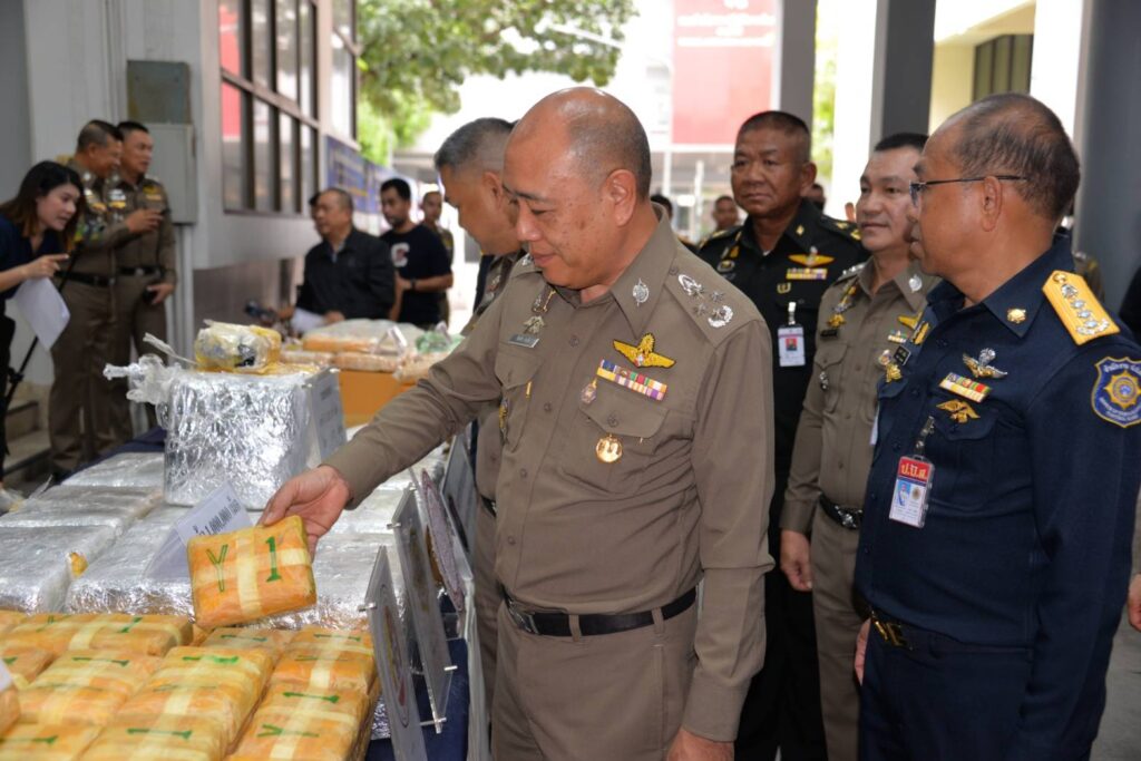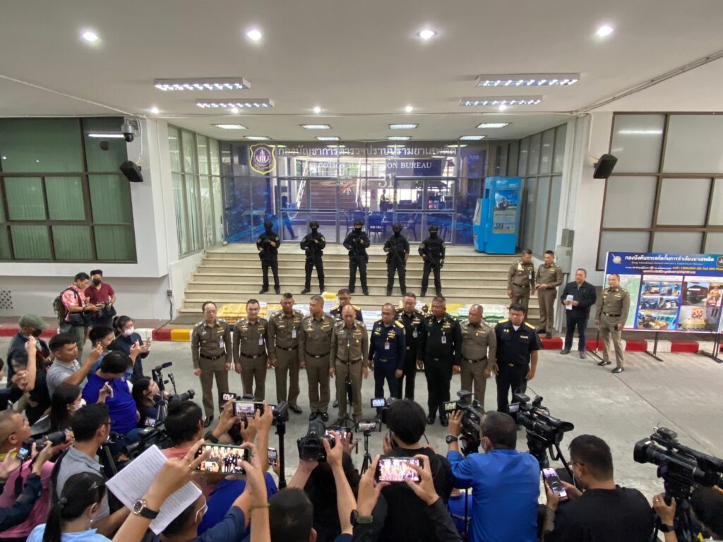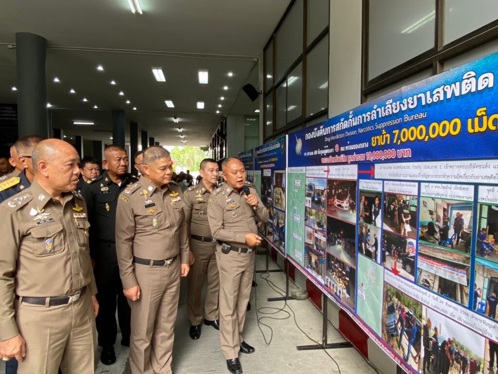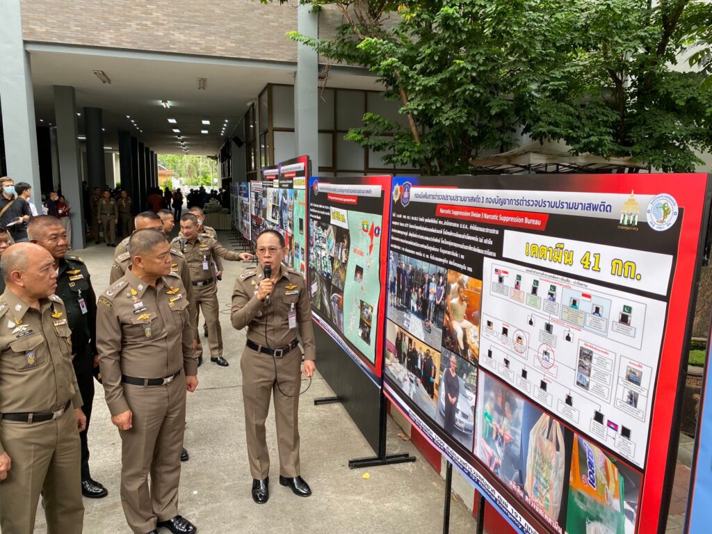 เมื่อวันที่ 5 ก.ย.2566 เวลา 10.00 น. พล.ต.อ.ชินภัทร สารสิน รอง ผบ.ตร./ผอ.ศอ.ปส.ตร.,พล.ต.ท.ประจวบ วงศ์สุข ผู้ช่วย ผบ.ตร./รอง ผอ.ศอ.ปส.ตร.,พล.ต.ท.สรายุทธ สงวนโภคัย ผบช.ปส.,พล.ต.ต.พลัฏฐ์ วิเศษสิงห์ ผบก.สกส.,พล.ต.ต.สมกิต พุ่มวารี ผบก.ขส.,พล.ต.ต.พรศักดิ์ สุรสิทธิ์ ผบก.ปส.4 และ พล.ต.ต.ธรรัชน์ สอนกล้า ผบก.ปส.2 พร้อมด้วย เจ้าหน้าที่ ป.ป.ส. และ กอ.รมน. ร่วมแถลงผลการจับกุมเครือข่ายยาเสพติดตามนโยบายของ พล.ต.อ.ดำรงศักดิ์ กิตติประภัสร์ ผบ.ตร.ให้กวาดล้างจับกุมเครือข่ายยาเสพติดรายใหญ่และรายย่อยให้หมดสิ้นโดยเร็ว ล่าสุดตำรวจ ปส.(NSB) ได้จับกุมขบวนการค้า ยาเสพติด 13 เครือข่ายยาเสพติด จับกุมผู้ต้องหา 26 คน ยึดยาบ้า 17.27 ล้านเม็ด,ไอซ์ 1,320 กก.,คีตามีน 90 กก.,รถยนต์ 20 คัน และอาวุธปืนสั้น 1 กระบอก
