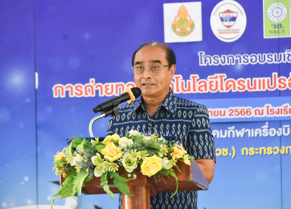 นายพิศิษฐ์ มิตรเกื้อกูล นายกสมาคมกีฬาเครื่องบินจำลองและวิทยุบังคับ กล่าวว่า สมาคมกีฬาเครื่องบินจำลองและวิทยุบังคับ ร่วมกับ (วช.) จัดโครงการอบรมเชิงปฏิบัติการการถ่ายทอดเทคโนโลยีโดรนแปรอักษรเพื่อประยุกต์สู่การใช้งาน ให้กับนักเรียน นักศึกษา ในสถาบันการศึกษาต่างๆ ทั่วประเทศ เพื่อถ่ายทอดองค์ความรู้เทคโนโลยีโดรนแปรอักษรที่ทันสมัย เพื่อนำไปประยุกต์ใช้งาน ตลอดจนส่งเสริมให้เกิดการสร้างนวัตกรรมและนวัตกร ที่จะนำความรู้เทคโนโลยีอากาศยานไร้คนขับ หรือ โดรน มาปรับใช้กับการทำงานในด้านต่างๆ โดยการจัดอบรมในครั้งนี้ จัดเป็นครั้งที่ 4 ของภาคตะวันออกเฉียงเหนือ ที่โรงเรียนหนองคายวิทยาคาร วิจิตรวิทยา จังหวัดเลย ระหว่างวันที่ 1-3 กันยายน 2566 โดยมีเยาวชนเข้าร่วมการอบรม มากกว่า 100 คน ซึ่งเน้นสนับสนุนให้ผู้เรียนได้ลงมือปฏิบัติและลงมือทำ ในสภาพแวดล้อมจริง ได้ฝึกคิด ฝึกปฏิบัติ เพิ่มทักษะด้วยตนเองผ่านกิจกรรม “โดรนแปรอักษร”