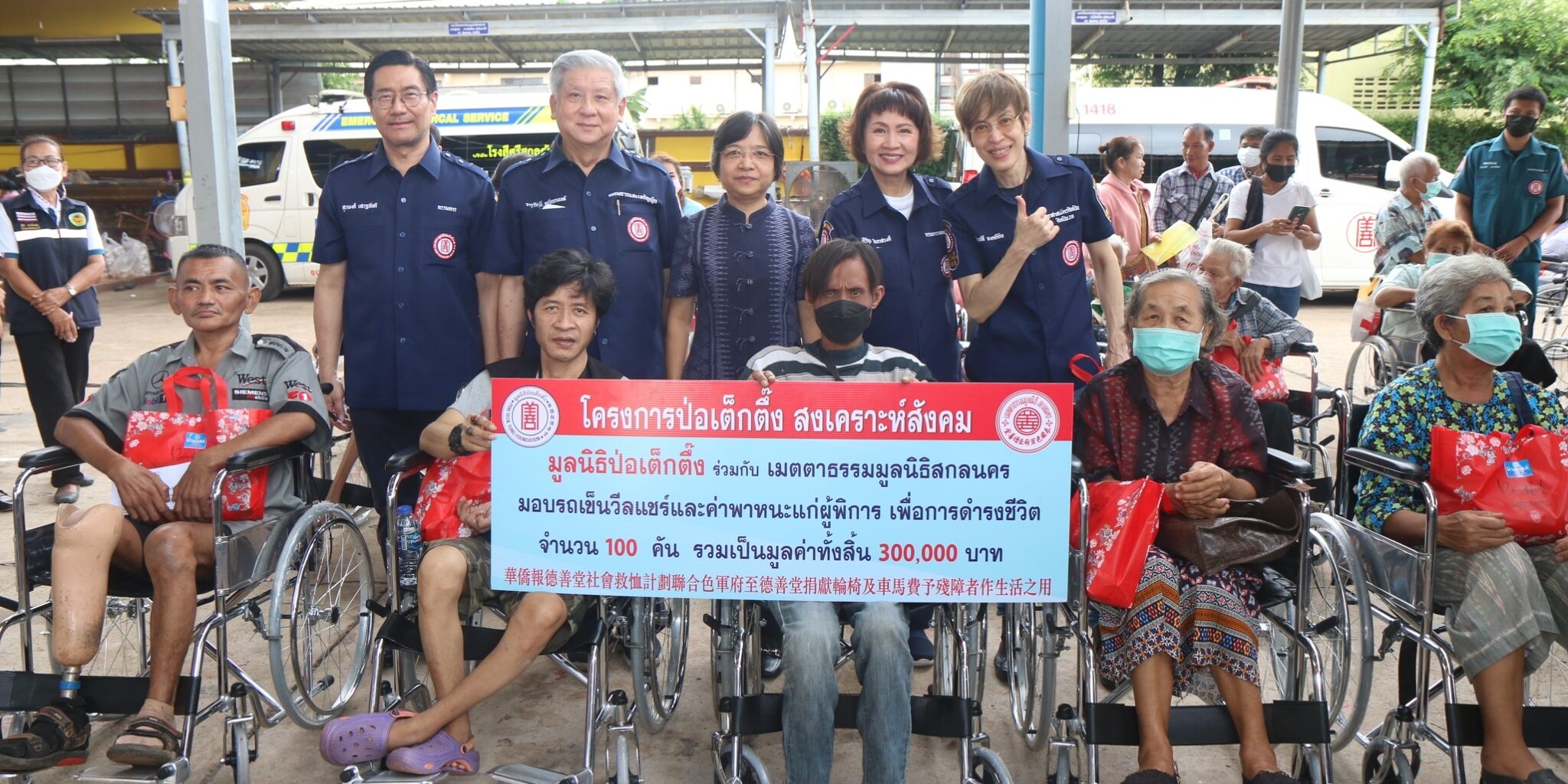 วันนี้ (วันพุธที่ 6 กันยายน 2566) มูลนิธิป่อเต็กตึ๊ง นำโดย นางศิริกุล โอภาสวงศ์ กรรมการและเลขาธิการ พร้อมด้วย นายจารุรัตน์ คุณัตถานนท์ กรรมการและเหรัญญิก และนายสุรพงศ์ เสรฐภักดี กรรมการและรองเหรัญญิก และนางสาวศิริพร กระจ่างหล้า ผู้จัดการฝ่ายสังคมสงเคราะห์ นำทีมแผนกส่งเสริมการศึกษาและอาชีพ ลงพื้นที่จังหวัดสกลนคร มอบรถเข็นวีลแชร์ ในโครงการ “ป่อเต็กตึ๊ง สงเคราะห์สังคม” แก่ผู้พิการ จำนวน 100 คัน พร้อมมอบค่าพาหนะ คนละ 500 บาท คิดเป็นมูลค่า 300,000 บาท (สามแสนบาทถ้วน) พร้อมนำหน่วยแพทย์สงเคราะห์ชุมชนให้บริการประชาชนฟรี ประกอบด้วย บริการตรวจรักษาโรคทั่วไป จ่ายยา ตรวจวัดสายตาพร้อมแจกแว่น บริการทันตกรรม และบริการตัดผม ฯลฯ โดยมีประชาชนเข้ารับบริการเป็นจำนวนมาก โดยมี นางสาววรางคณา วงศ์มหาชัย พัฒนาสังคมและความมั่นคงของมนุษย์จังหวัดสกลนครในนามผู้แทนผู้ว่าราชการจังหวัดสกลนคร เป็นประธานในพิธี คณะเมตตาธรรมมูลนิธิสกลนคร เป็นผู้ประสานงานและร่วมในพิธี พร้อมด้วย อาสาสมัครศิลปิน นำโดย นางสาวอัญชลี จงคดีกิจ (ปุ๊-อัญชลี) ร่วมแจกจ่ายในครั้งนี้ ณ เมตตาธรรมมูลนิธิสกลนคร อำเภอเมือง จังหวัดสกลนคร