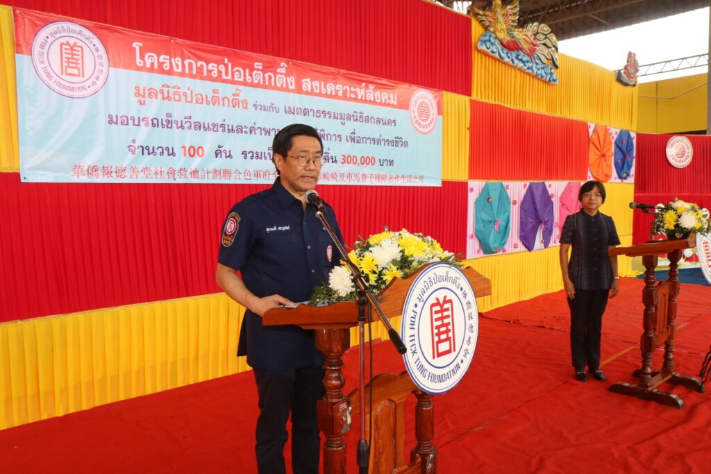 สำหรับ“โครงการ ป่อเต็กตึ๊ง สงเคราะห์สังคม” มอบรถเข็นวีลแชร์ให้กับผู้พิการ เป็นส่วนหนึ่งที่มูลนิธิได้ดำเนินการมาตั้งแต่ปี 2558 และได้กระจายความช่วยเหลือไปสู่ภาคต่าง ๆ ของประเทศไทย ซึ่งตลอดระยะเวลากว่า 113 ปีที่ผ่านมา มูลนิธิป่อเต็กตึ๊ง ได้ขยายขอบข่ายโครงการต่าง ๆ ออกไปอย่างกว้างขวาง ไม่เพียงแต่บำบัดทุกข์ บำรุงสุข แก่ผู้ตกทุกข์ได้ยากโดยไม่จำกัดเชื้อชาติ ศาสนา เท่านั้น แต่ยังได้พัฒนาคุณภาพชีวิตอีกในหลาย ๆ ทาง เพื่อเป็นองค์กรสาธารณกุศลที่ช่วยเหลือประชาชนครบวงจรในทุก ๆ ด้าน ต่อไป