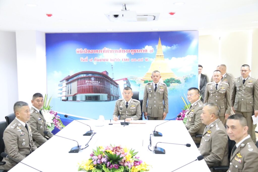 ผบ.ตร.เดินทางมาถึงที่ทำการ ภ.7 แห่งใหม่ จุดธูปบูชาพระรัตนตรัย พระสงฆ์เจริญพระพุทธมนต์ ผบช.ภ.7 กล่าวรายงานที่มาของอาคารที่ทำการแห่งใหม่ จากนั้น ผบ.ตร.กดปุ่มเปิดผ้าแพร ป้ายอาคารที่ทำการแห่งใหม่ ต่อด้วยพิธีการทางสงฆ์ เป็นอันเสร็จพิธี ผบ.ตร.พร้อมแขกผู้เกียรติ เข้าเยี่ยมอาคารที่ทำการแห่งใหม่ ซึ่งเชื่อว่าจะช่วยให้การทำงานของตำรวจ ภ.7 มีประสิทธิภาพมากยิ่งขึ้น จากนั้น พล.ต.อ.ดำรงศักดิ์ฯ ได้เดินทางไปยังห้องประชุม มอบนโยบายให้ตำรวจ ภ.7