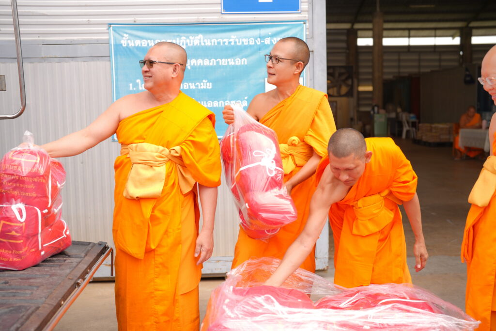 เมื่อเวลา 13.00 น. วันที่ 8 กันยายน 2566 ที่วัดพระธรรมกาย ตำบลคลองสาม อำเภอคลองหลวง จังหวัดปทุมธานี พระมหานพพร ปุญฺญชโย ป.ธ.9 รองผู้อำนวยการสำนักสื่อสารองค์กร วัดพระธรรมกาย , พระอาจารย์ธีรพัฒน์ กุลธีโร หัวหน้าสำนักงานประสานงานศูนย์ส่งเสริมศีลธรรม และ คุณบุญจันทร์ บ่อไทย ผู้แทนวัดพระธรรมกาย และมูลนิธิธรรมกาย ร่วมกันส่งมอบถุงยังชีพบรรเทาภัยบรรจุข้าวสารอาหารแห้ง จำนวน 1,000 ชุด ให้กับผู้แทนศูนย์ปฏิบัติธรรมจันทบุรี เพื่อช่วยเหลือผู้ประสบภัยที่ได้รับผลกระทบจากสถานการณ์น้ำท่วมฉับพลัน และน้ำป่าไหลหลาก ในพื้นที่ อ.มะขาม และ อ.ขลุง จ.จันทบุรี ซึ่งบางจุดมีน้ำท่วมขังกว่า 1 เมตร