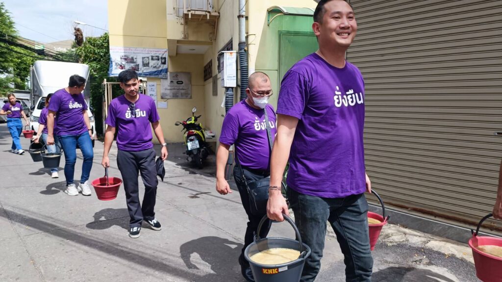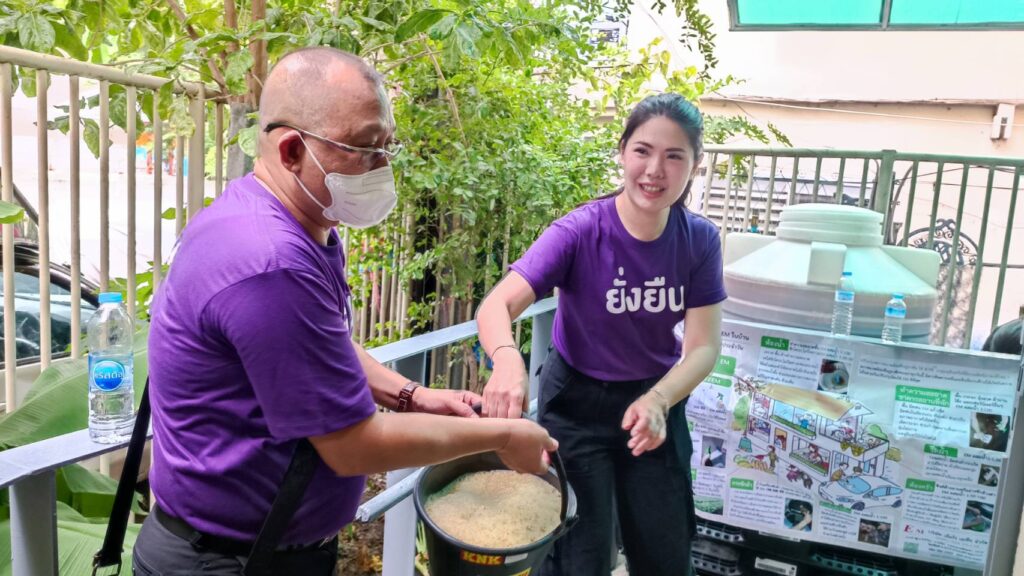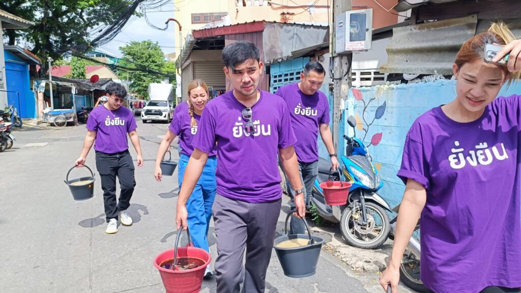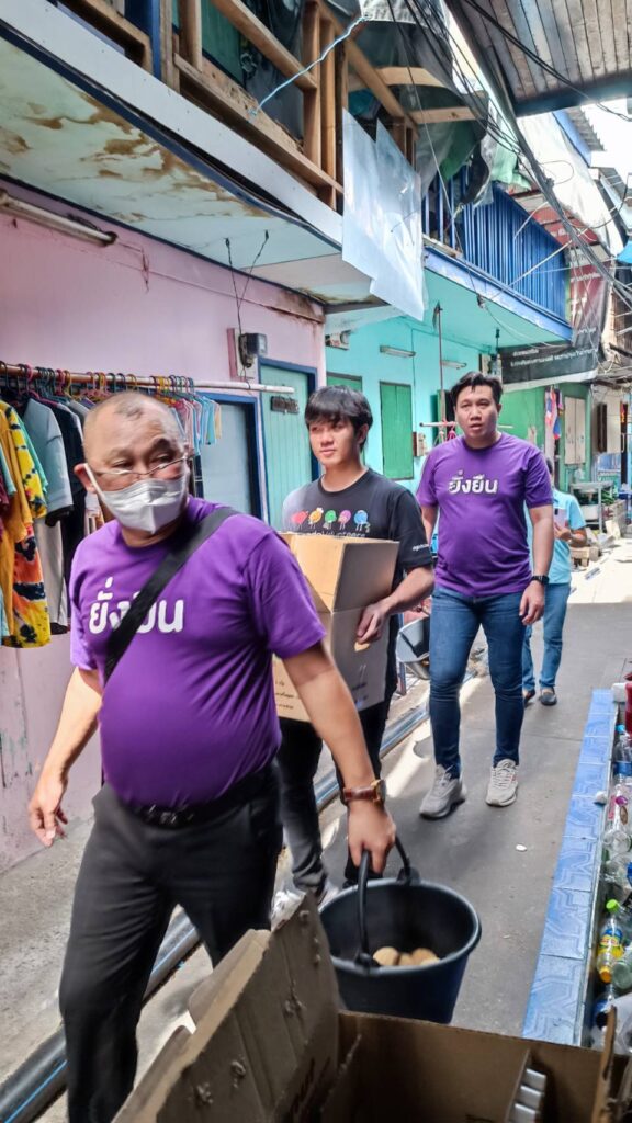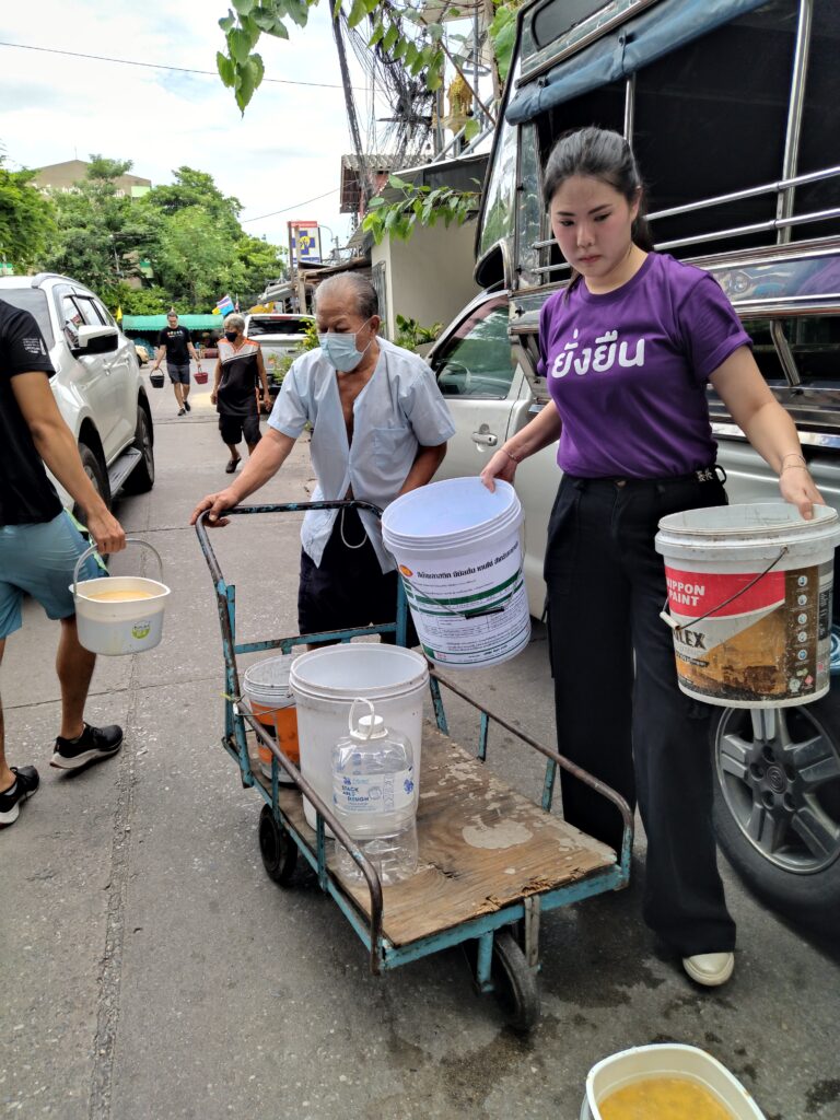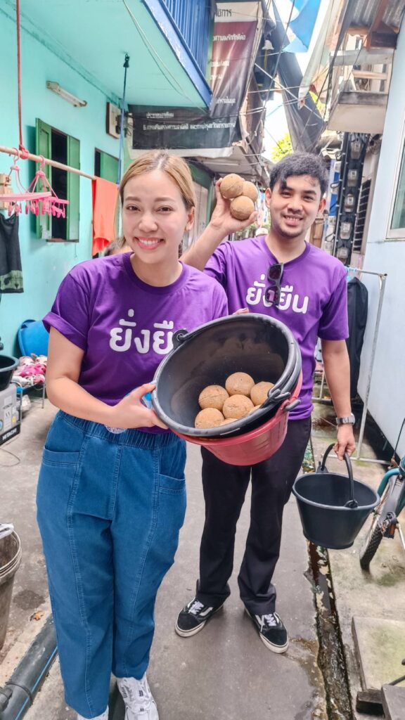 “วันนี้พวกเราได้ร่วมกับ Bangkok Community Help Foundation เพื่อหย่อน EM ball ลงในแหล่งน้ำในพื้นที่ชุมชนคลองเตยค่ะ เฟมในฐานะผู้สมัคร สส.เก่า แม้ว่าเฟมจะไม่ได้เข้าสภาแต่ก็ยังได้ติดต่อกับพ่อแม่พี่น้องในชุมชนอยู่ตลอด รับทราบว่าที่นี่มีปัญหาน้ำเสียพอสมควร เราเลยมาช่วยและตั้งใจมาศึกษาพื้นที่ต้องเพื่อพัฒนาเรื่องการบำบัดน้ำเสียในชุมชนต่อ เป็นการพัฒนาคุณภาพชีวิตประชาชนในพื้นที่ค่ะ ช่วงเลือกตั้งเราสัญญากับพี่น้องที่แล้วว่าเราจะไม่ทิ้งไปไหน ก็ต้องทำตามสัญญาค่ะ ทำได้มากหรือน้อยก็ทำเต็มที่ไว้ก่อนค่ะ” เฟม ศณิศา กล่าวอย่างอารมณ์ดี