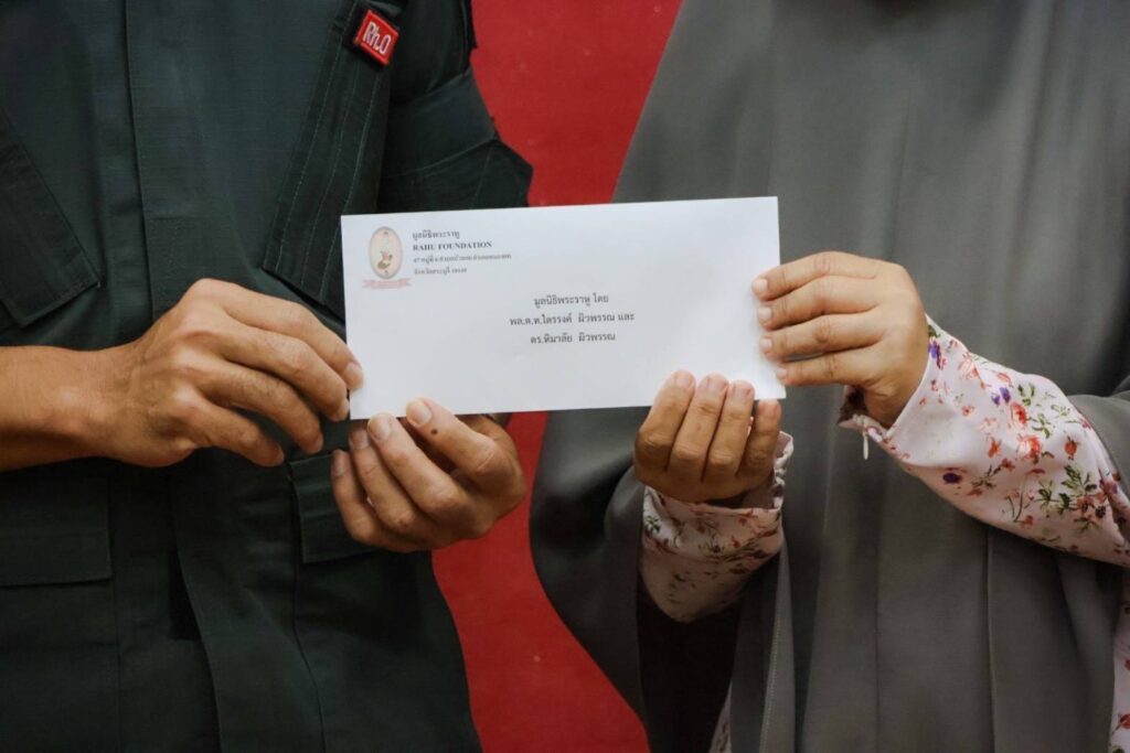 ร่วมมอบธงชาติ เงินบำรุงขวัญ และพูดคุยให้กำลังใจ แก่ครอบครัว ด.ต.ตุแวเลาะ รอมะ ผบ.หมู่ ( ป.) สภ.ยะรัง จ.ปัตตานี ผู้ปฏิบัติหน้าที่ สละชีพเพื่อชาติ ซึ่งเสียชีวิตจากเหตุระเบิด และยิงถล่มเจ้าหน้าที่ตำรวจ เหตุเกิดหน้าเทศบาลตำบลยะรัง จ.ปัตตานี เมื่อวันที่ 28 ส.ค.2566 ที่ผ่านมาตามโครงการ “ส่งเสริมคนดี มูลนิธิพระราหู”