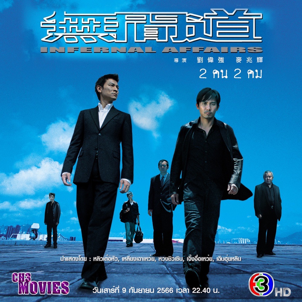 ปิดท้ายวันด้วยความเท่ของมาเฟีย “แชนแนลทรีมูฟวี่ส์” เสนอภาพยนตร์ “2คน 2คม: Infernal Affairs” นำแสดงโดย หลิวเต๋อหัว, เหลียงเฉาเหว่ย, หวงชิวเซิน เรื่องราวของ หานเซิน เขาเป็นมาเฟียใหญ่ฮ่องกงมานานกว่า 20 ปี หานเซินจะชุบเลี้ยงเด็กหนุ่มฝีมือดีเป็นลูกมือ ทางสารวัตรหวง จึงต้องส่งสายลับเข้าไปแทรกซึม โดยสายลับคนนั้นก็คือ เหยิน ขณะเดียวกัน หมิง เป็นนายตำรวจดาวรุ่งมาแรง โดยที่หมิงเองก็เป็นสายให้ทางหานเซินด้วย ทั้งคู่ได้พบปะกันโดยที่ไม่รู้ว่าต่างฝ่ายต่างก็เป็นสายให้ฝ่ายตรงข้าม จนเมื่อมีเหตุการณ์ผกผันทำให้ทั้งสองเอะใจ และเริ่มสังเกตซึ่งกันและกัน การหักเหลี่ยมเฉือนคมกันโดยที่ยังต้องปิดบังสถานะที่แท้จริงของตัวเองจึงเกิดขึ้น ติดตามได้ใน“แชนแนลทรีมูฟวี่ส์” “2คน 2คม: Infernal Affairs” เวลา 22.40 น.