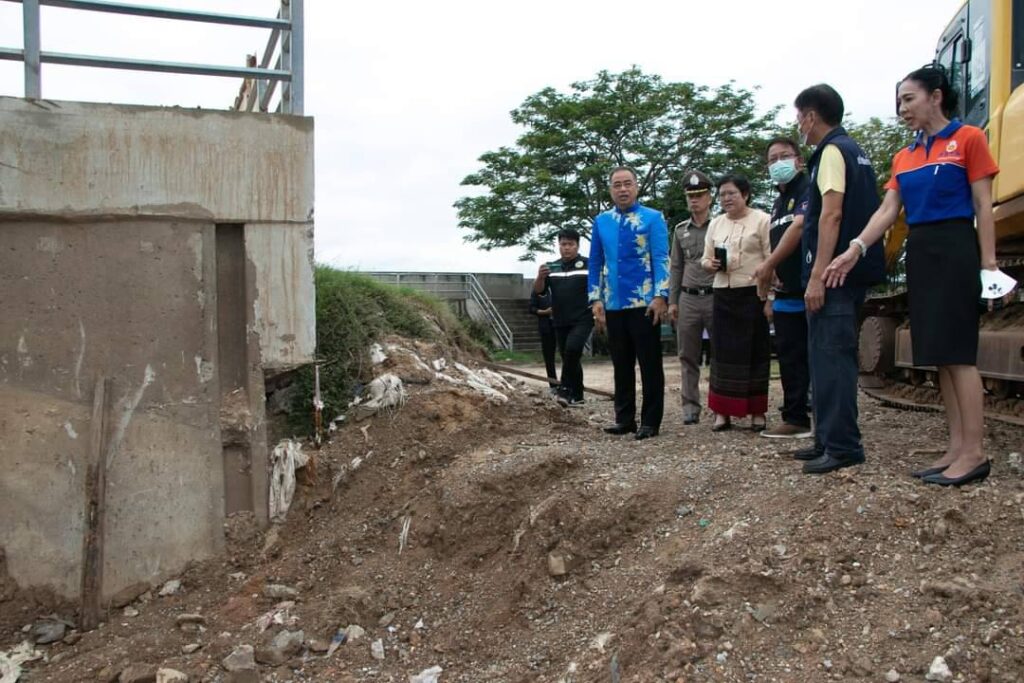 นายสุพจน์ ยศสิงห์คำ ผู้ว่าราชการจังหวัดสิงห์บุรี พร้อมนางศิริลักษณ์ เหมาะพิชัย นายอำเภออินทร์บุรี นางสาวนงเยาว์ เทพศิริ หัวหน้าป้องกันและบรรเทาสาธารณภัย ประชาสัมพันธ์จังหวัดสิงห์บุรี และเจ้าหน้าที่เทศบาลตำบลอินทร์บุรี ลงพื้นที่ตรวจเยี่ยมความคืบหน้าโครงการปรับปรุงและซ่อมแซมคั้นกั้นน้ำเจ้าพระยา(วัดปราสาท) หมู่ที่ 4 ตำบลอินทร์บุรี อำเภออินทร์บุรี จังหวัดสิงห์บุรี ซึ่งผู้รับเหมากำลังตอกเสาเข็มกดแผ่นวัสดุกันน้ำใต้ฐานกั้นน้ำเพื่อปิดช่องที่พังความยาว 36 เมตร ต่อจากนั้นจะก่อสร้างพนังกั้นน้ำคอนกรีตเสริมเหล็กคาดว่าจะเสร็จตามสัญญาในเดือนกุมภาพันธ์ 2567 ปีหน้า เพื่อป้องกันปัญหาน้ำท่วมซ้ำซาก และน้ำล้นตลิ่งเข้าท่วมบ้านเรือนประชาชนช่วงฤดูฝนจากน้ำเหนือเป็นประจำทุกปี แต่ปีน้ำน้ำน้อยกว่าทุกปีขอให้ประชาชนริมฝั่งแม่น้ำเจ้าพระยาวางใจปีนี้น้ำไม่ท่วมแน่นอน