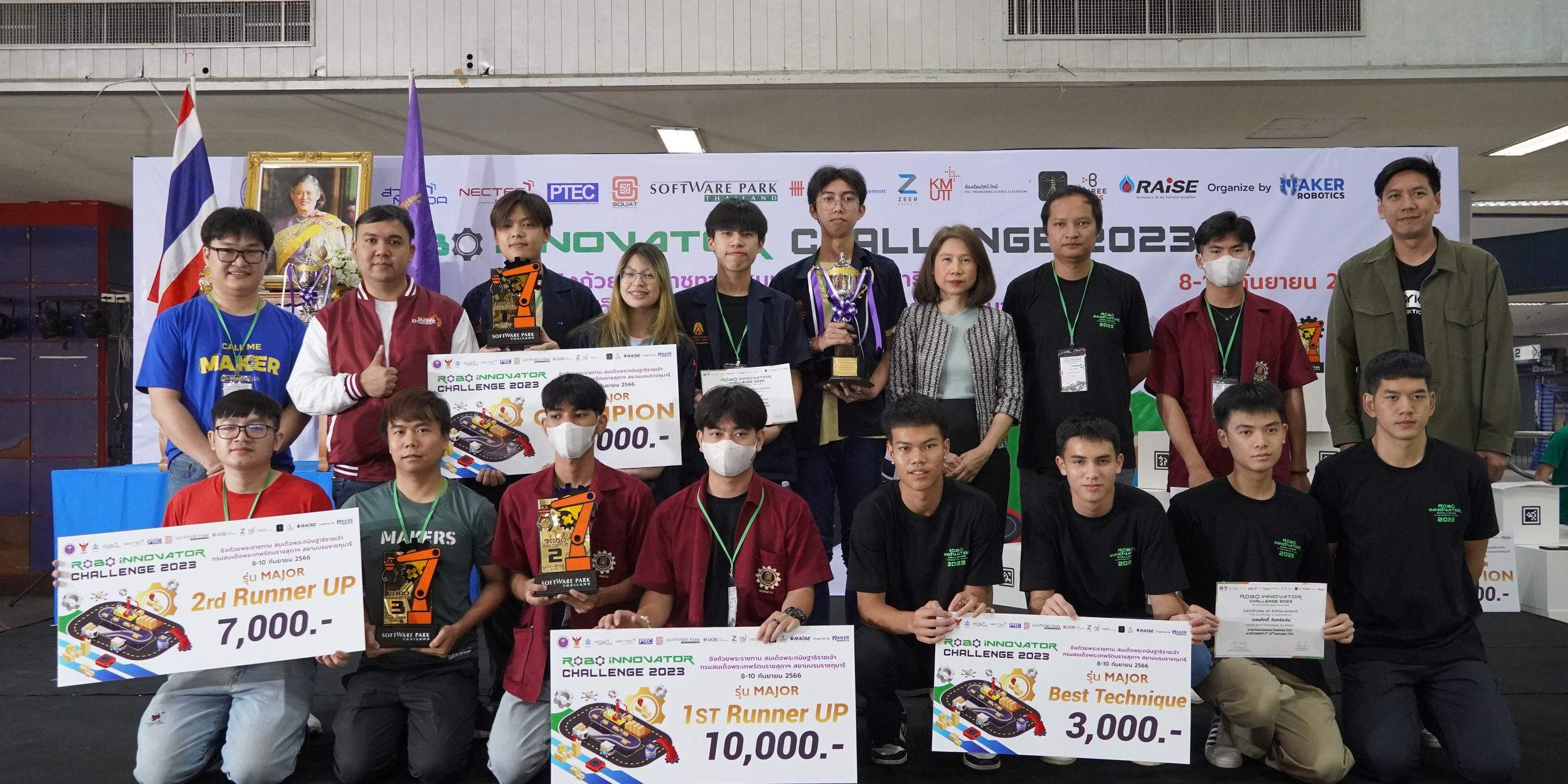 เมื่อวันที่ 10 กันยายน 2566 : ณ ลานกิจกรรม ชั้น 2 ศูนย์การค้าเซียร์ รังสิต : กระทรวงการอุดมศึกษา วิทยาศาสตร์ วิจัยและนวัตกรรม (อว.) สำนักงานพัฒนาวิทยาศาสตร์และเทคโนโลยีแห่งชาติ (สวทช.) โดย เขตอุตสาหกรรมซอฟต์แวร์ประเทศไทย (Software Park Thailand : SWP) ร่วมกับศูนย์ทดสอบผลิตภัณฑ์ไฟฟ้าและอิเล็กทรอนิกส์ (PTEC) และ ห้องปฏิบัติการทดสอบซอฟต์แวร์ SQUAT ศูนย์เทคโนโลยีอิเล็กทรอนิกส์และคอมพิวเตอร์แห่งชาติ (เนคเทค) โดยการสนับสนุนจากกองทุนวิจัยและพัฒนากิจการกระจายเสียง กิจการโทรทัศน์ และกิจการโทรคมนาคม เพื่อประโยชน์สาธารณะ (กทปส.) จัดกิจกรรมมอบรางวัลการแข่งขันหุ่นยนต์ไร้การบังคับอัจฉริยะ“Robo Innovator Challenge 2023 By Software Park Thailand” ชิงถ้วยพระราชทานสมเด็จพระกนิษฐาธิราชเจ้า กรมสมเด็จพระเทพรัตนราชสุดาฯ สยามบรมราชกุมารี ซึ่งการแข่งขันหุ่นยนต์อัจฉริยะไร้การบังคับได้จัดขึ้นเป็นปีที่ 3 ติดต่อกันเพื่อเฟ้นหาความสามารถพิเศษ (Talent) ที่ใช้การควบคุมระบบขับเคลื่อนอัตโนมัติ (Self-Driving Car) แบบไร้การบังคับ และยังสามารถตอบโจทย์ระบบโลจิสติกส์เพื่อช่วยขนส่งสินค้าจากต้นทางไปยังปลายทางตามความต้องการของลูกค้าได้อีกด้วย
