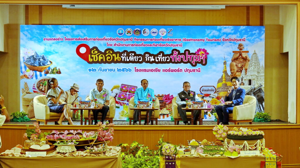 ในงาน เช็คอินที่เดียว กินเที่ยวทั้งปทุมฯ เทศกาลส่งเสริมการท่องเที่ยวเชิงอาหาร (Gastronomy Tourism) จังหวัดปทุมธานี จัดขึ้นระหว่างวันที่ 20 – 24 กันยายน 2566 ณ ลานโปรโมชั่น ชั้น 2 ศูนย์การค้าเซียร์ รังสิต เพื่อกระตุ้นเศรษฐกิจจากการท่องเที่ยวภายในประเทศ หลังสถานการณ์โควิด-19 ระบาดผ่อนคลายลงและเตรียมพร้อมเปิดเมืองให้นักท่องเที่ยวเดินทางท่องเที่ยวภายในประเทศมากขึ้น/ และสร้างความเข้มแข็งและยั่งยืนให้กับเศรษฐกิจภายในประเทศ (Local Economy) การสร้างความเข้มแข็งให้เศรษฐกิจรายสาขา รายได้จากการท่องเที่ยวภายในงานเทศกาลส่งเสริมการท่องเที่ยวเชิงอาหาร (Gastronomy Tourism) จังหวัดปทุมธานี ได้รวบรวมไว้ทั้งอาหารนานาชนิดที่ขึ้นชื่อ อาหารดั้งเดิมของชนชาติไทย มอญ อิสลาม จีน อาหารพื้นบ้าน อาทิ ข้าวแช่มอญเมืองปทุมธานี ก๋วยเตี๋ยวเรือรสเด็ด ข้าวยำสมุนไพร วุ้นดอกบัว เมี่ยงคำดอกบัวข้าวเกรียบมอญโบราณ ทอดมันหน่อกะลา ข้าวเกรียบกองถ่าย ปลาดุกแดดเดียว ขนมเบื้อง