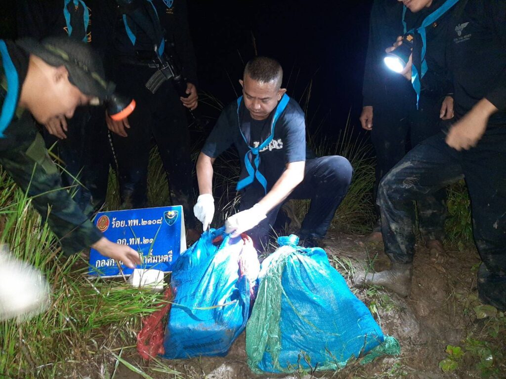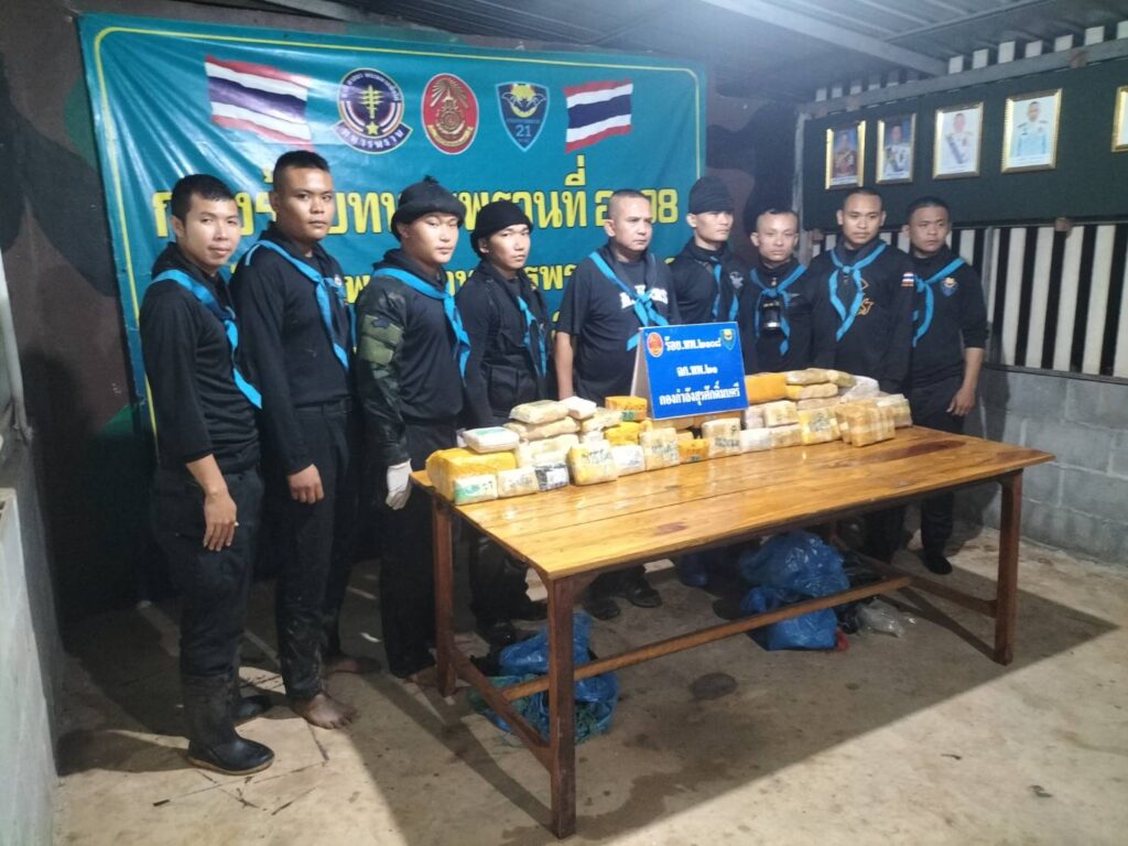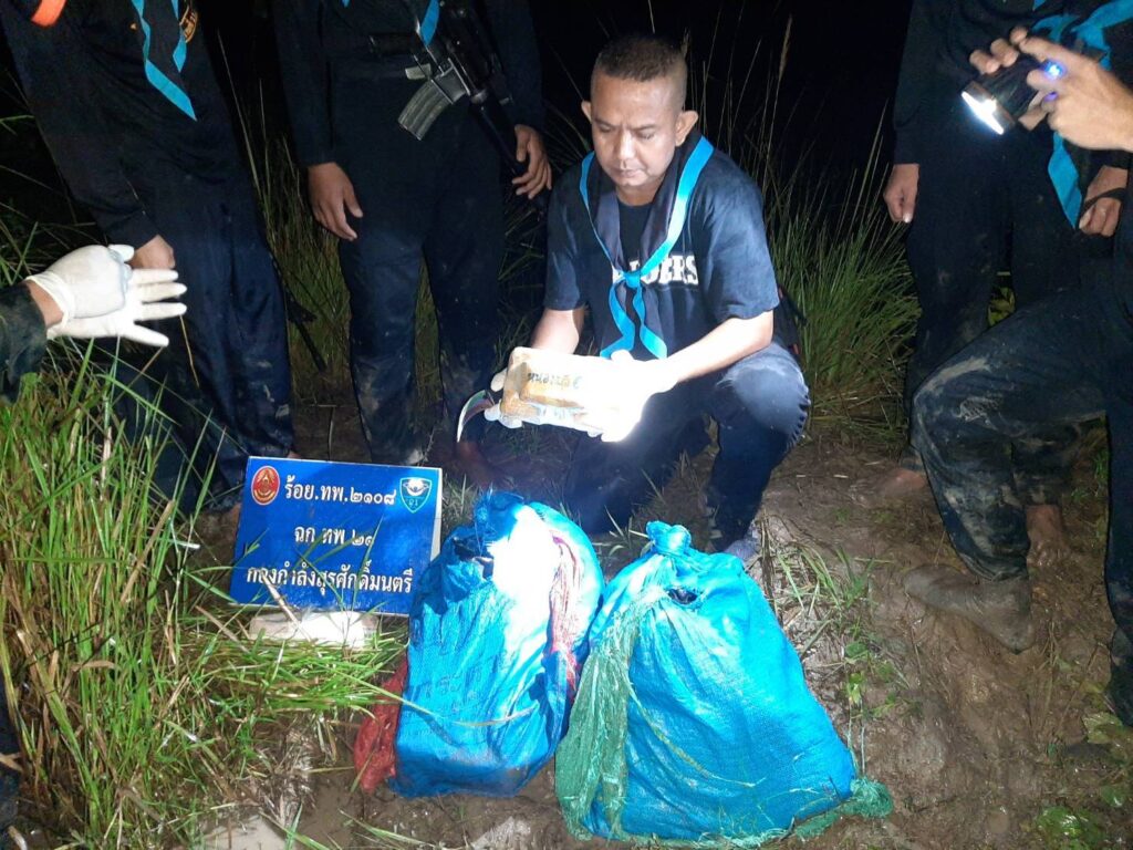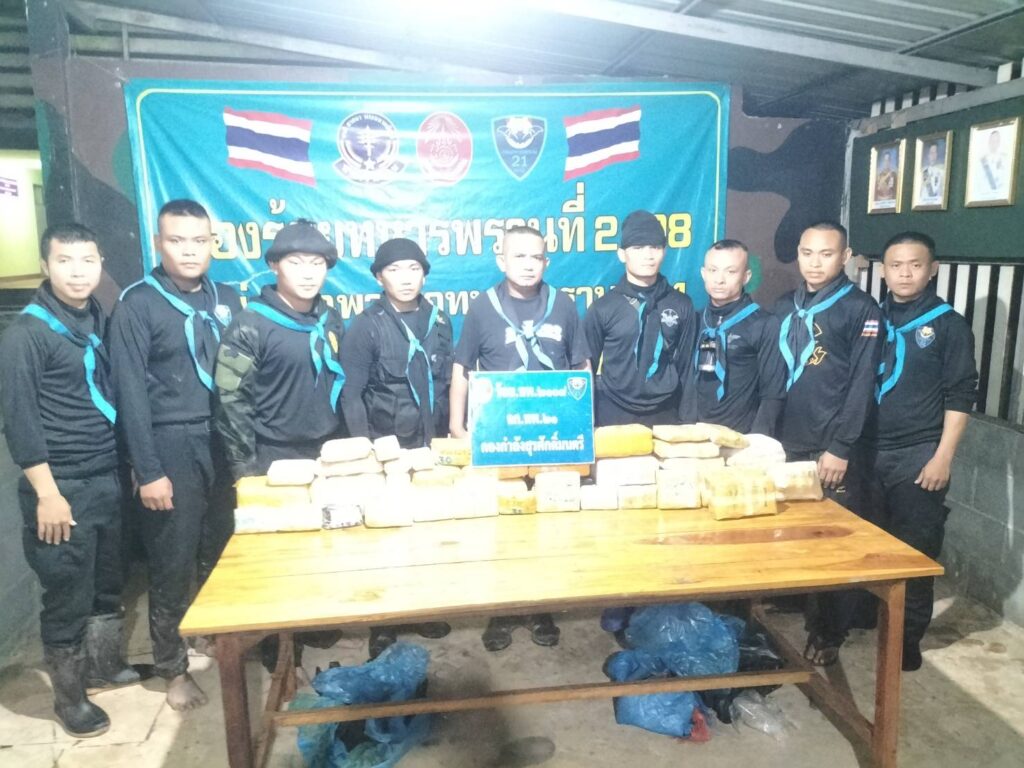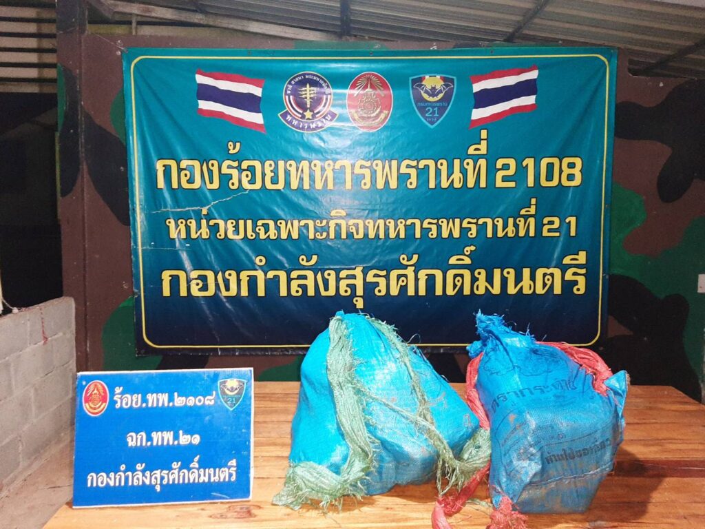 หน่วยเฉพาะกิจกรมทหารพรานที่ 21 กองกำลังสุรศักดิ์มนตรี โดย พันเอก สุริวัชร์ อัครพรเดชาพงษ์ ผู้บังคับการกรมทหารพรานที่ 21/ ผู้บังคับหน่วยเฉพาะกิจกรมทหารพรานที่ 21 ได้รับแจ้งจากแหล่งข่าวว่ามีความเคลื่อนไหวของกลุ่มขบวนการค้ายาเสพติดข้ามชาติจากประเทศเพื่อนบ้าน ในพื้นที่ริมฝั่งแม่น้ำโขง อำเภอบ้านแพง จังหวัดนครพนม มีความพยามจะนำยาเสพติดประเภทที่ 1 (ยาบ้า) เข้ามาเพื่อลำเลียงเข้าสู่พื้นที่ตอนในของประเทศ ตามใบสั่งของกลุ่มขบวนการ โดยอาศัยช่วงวันที่ฝนตกและช่วงเวลาของแม่น้ำโขงที่มีระดับขึ้นสูงและไหลเชี่ยว จังรีบสั่งการให้ ร้อยโท วันชาติ เหมือนปืน ผู้บังคับกองร้อยเฉพาะกิจทหารพรานที่ 2108 หน่วยเฉพาะกิจกรมทหารพรานที่ 21 กองกำลังสุรศักดิ์มนตรีจัดกำลังพลปฏิบัติการซีลชายแดนซุ่มเฝ้าตรวจในพื้นที่เพ่งเล็งตามริมแม่น้ำโขง ในพื้นที่รับผิดชอบบริเวณทุ่งนา บ้านแพงใต้ หมู่ที่ 11 ตำบลบ้านแพง อำเภอบ้านแพง จังหวัดนครพนม กำลังพลของหน่วยที่ทำการซุ่มเฝ้าตรวจอยู่ได้สังเกตุเห็น กลุ่มชายฉกรรจ์ซึ่งเป็นขบวนการค้ายาเสพติด จำนวน 3 คน แบกสิ่งของเดินมาตามเส้นทางในภูมิประเทศ เมื่อชายกลุ่มดังกล่าวเดินมาใกล้กับจุดที่ กำลังพลของหน่วยทำการซุ่มเฝ้าตรวจอยู่ จึงได้แสดงตัวขอตรวจสอบสิ่งของที่แบกมา เมื่อชายกลุ่มดังกล่าวเห็นว่าเป็นเจ้าหน้าที่จึงตกใจและได้ทิ้งสิ่งของที่แบกมา แล้วรีบวิ่งหลบหนีไปโดยอาศัยความชำนาญในพื้นที่และความมืดหลบหนี หน่วยจึงได้เข้าทำการตรวจสอบพื้นที่ ตรวจพบสิ่งของต้องสงสัย จำนวน 2 กระสอบ จึงได้ทำการตรวจสอบสิ่งของต้องสงสัย ผลการตรวจสอบ พบเป็นยาเสพติดประเภทที่ 1(ยาบ้า) บรรจุอยู่ภายใน จึงได้ทำการตรวจยึดยาเสพติดดังกล่าว มายังกองร้อยเฉพาะกิจทหารพรานที่ 2108 หน่วยเฉพาะกิจกรมทหารพรานที่ 21 เพื่อทำการตรวจนับอย่างละเอียด ของกลาง ยาบ้า 129 มัด จำนวน 258,000 เม็ด พร้อมทั้งได้ประสานหน่วยงานความมั่นคงในพื้นที่ ร่วมบูรณาการแถลงข่าวการตรวจยึด และส่งมอบของกลางทั้งหมดให้เจ้าหน้าที่ตำรวจสถานีตำรวจภูธรอำเภอบ้านแพง จังหวัดนครพนม เพื่อดำเนินการตามกฎหมายต่อไป