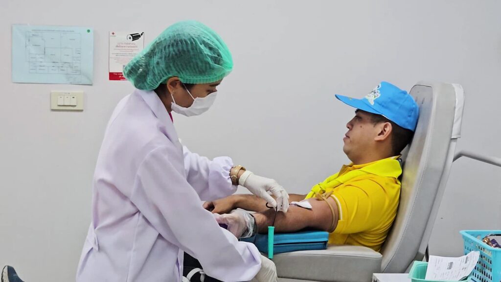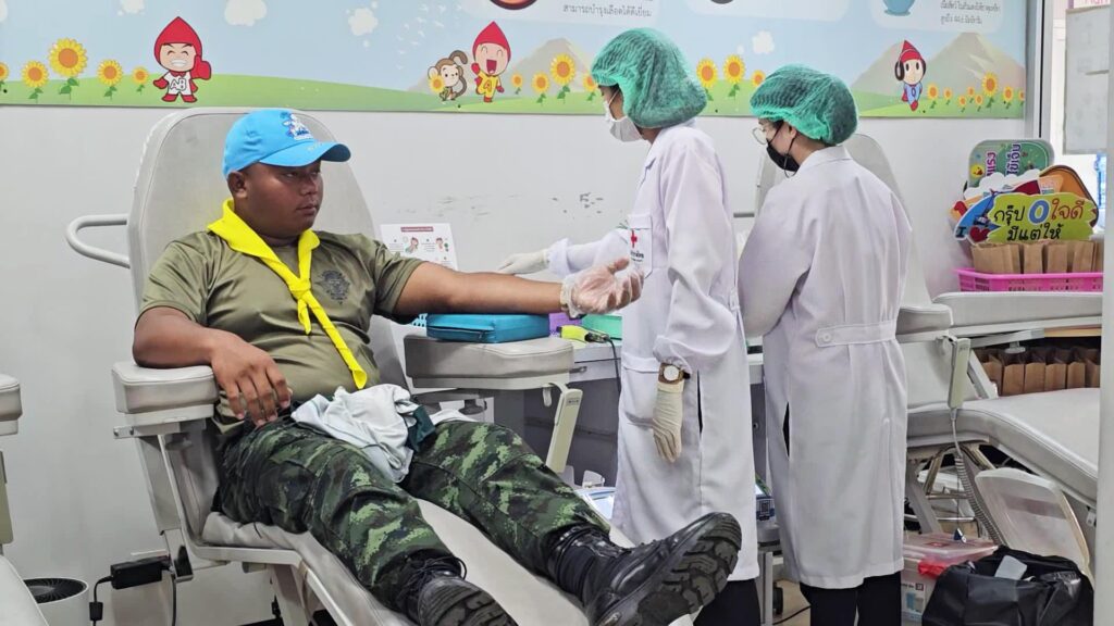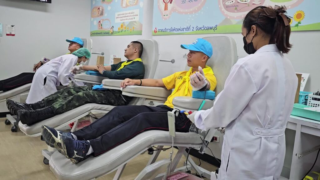 กองพันปฏิบัติการจิตวิทยา หน่วยบัญชาการสงครามพิเศษ (พัน.ปจว.นสศ.) ค่ายสมเด็จพระนารายณ์มหาราช จังหวัดลพบุรี จัดกำลังพล จิตอาสาพระราชทาน “เราทำความดี ด้วยหัวใจ” จำนวนกว่า 15 นาย ซึ่งได้ผ่านคัดกรองจากหน่วยแล้วว่า เป็นผู้ที่มีสุขภาพร่างการแข็งแรงสมบูรณ์ ไม่เป็นผู้เสี่ยงต่อการแพร่ระบาดของโรคติดเชื้อ โควิด 19 เดินทางไปยัง อาคารสำนักงานภาคบริการโลหิตแห่งชาติที่ 2 จังหวัดลพบุรี เพื่อเข้าร่วมบริจาคโลหิต ตามโครงการ “บริจาคโลหิต ช่วยชีวิตเพื่อนมนุษย์” เพื่อเป็นการแสดงออกซึ่งความรู้รักสามัคคี และความเสียสละ และเพื่อส่งต่อโลหิตที่ปลอดภัย ให้กับสภากาชาดไทย สำหรับใช้เป็นโลหิตสำรองให้กับโรงพยาบาลต่างๆ ซึ่งอยู่ใน ภาวะขาดแคลนโลหิต ในพื้นที่รับผิดชอบของ สำนักงานภาคบริการโลหิตแห่งชาติที่ 2 ทั้งในจังหวัดลพบุรี และ จังหวัดใกล้เคียง โดยมีโลหิตที่ได้ จำนวนทั้งสิ้น 6,000 ซีซี