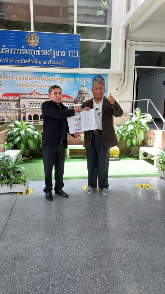 ได้ยื่นหนังสือถึงนายกรัฐมนตรีผ่านนายสาธิต สุทธิเสริม ผู้อำนวยการส่วนประสานมวลชน เพื่อให้ดำเนินการในส่วนที่เกี่ยวข้องต่อไป