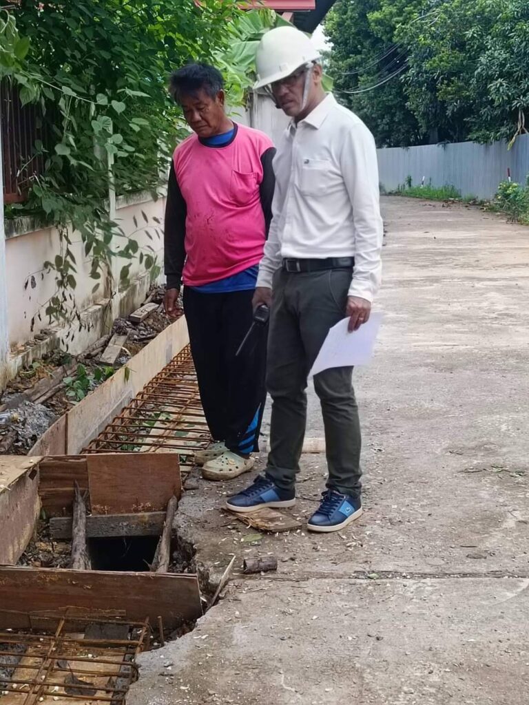 นายเขมชาติ มั่นเจ๊ก นายกเทศมนตรีตำบลทุ่งยั้ง ลงพื้นที่ตรวจหน้างานโครงการก่อสร้างรางระบายน้ำ ค.ส.ล. ซอย 4 ตั้งแต่บ้านนายแสวง เจี้ยมกลิ่น ถึงบ้านนายวิม เจี้ยมกลิ่น หมู่ที่ 3 ต.ทุ่งยั้ง