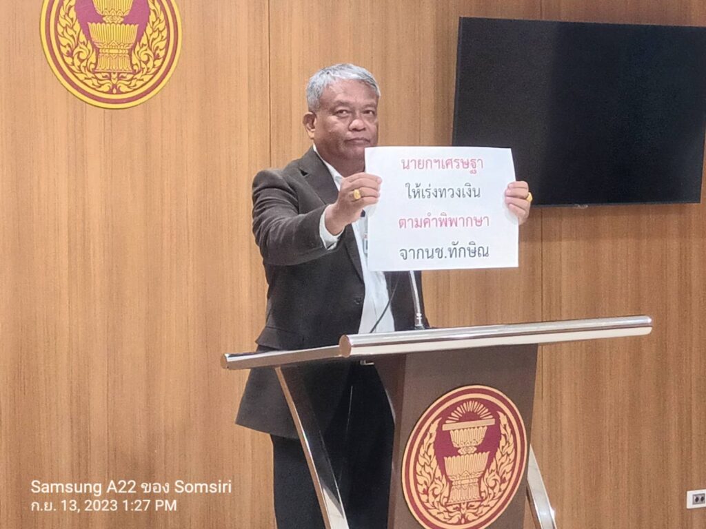 นายวัชระ กล่าวด้วยว่า เมื่อช่วงเช้าที่ผ่านมา ได้ส่งหนังสือถึงนายเศรษฐา ทวีสิน นายกรัฐมนตรี และรมว.คลัง เพื่อให้เร่งทวงเงินตามคำพิพากษาที่นายทักษิณ ชินวัตร อดีตนายกฯ ต้องชำระให้กับประเทศ จากคำพิพากษาศาลฎีกาแผนกคดีอาญานักการเมือง เกี่ยวกับการปล่อยกู้เงินให้ประเทศเมียนมาร์ จำนวน 4,000 ล้านบาท ผ่านธนาคารเพื่อการส่งออก และนำเข้าแห่งประเทศไทย (เอ็กซิม) โดยที่ศาลมีคำสั่งให้ติดตามเงินจำนวนดังกล่าวด้วย อย่างไรก็ตาม จนถึงตอนนี้เวลาล่วงเลยมา 4 ปี 4 เดือนแล้ว นายกฯ และรมว.คลัง มีอำนาจกำกับดูแลตามกฎหมาย และต้องปฏิบัติตามคำพิพากษา จึงขอให้นายกฯ ดำเนินการสั่งการให้กระทรวงการคลัง ติดตามดำเนินการตามคำพิพากษา หรือหากดำเนินการแล้ว ได้รับเงินจากบุคคลใด เท่าไหร่ และอย่างไร ตนขอให้ดำเนินการการตามกฎหมายอย่างเคร่งครัด และตนจะยื่นคำทักท้วงถึงนายกฯทุกเดือนจนกว่าจะปฏิบัติตามคำพิพากษา
