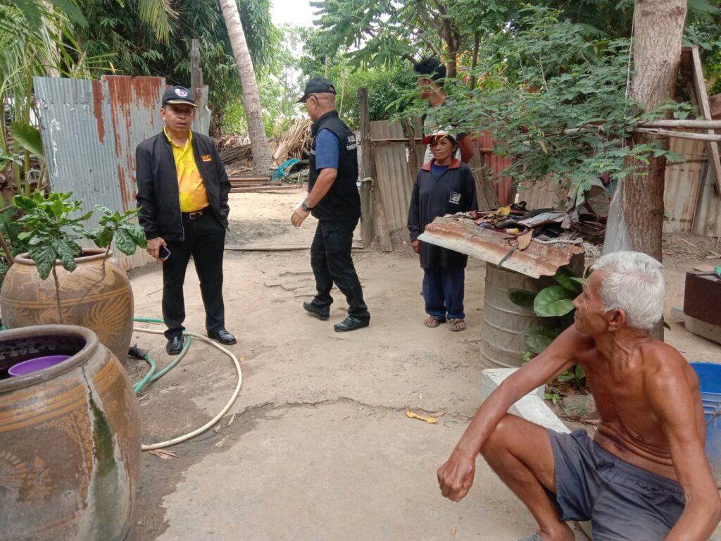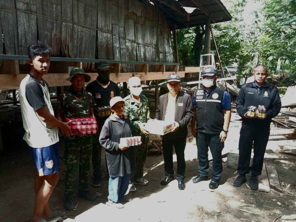 ในบ้านหลังดังกล่าวที่มีสภาพทรุดโทรมไม่มีประตูหน้าต่างผนังรอบบ้านเป็นไม้ไผ่ขัดแตะหลังคารั่วเสาบ้านผุทรุดตัว และคณะฯร่วมกันมอบเครื่องดี่ม น้ำอัดลม,เครื่องดื่มชูกำลัง,ปลากระป๋อง,บะหมี่กึ่งสำเร็จรูป ให้กับชุดทีมช่างฯ เพื่อเป็นขวัญกำลังใจต่อไป
