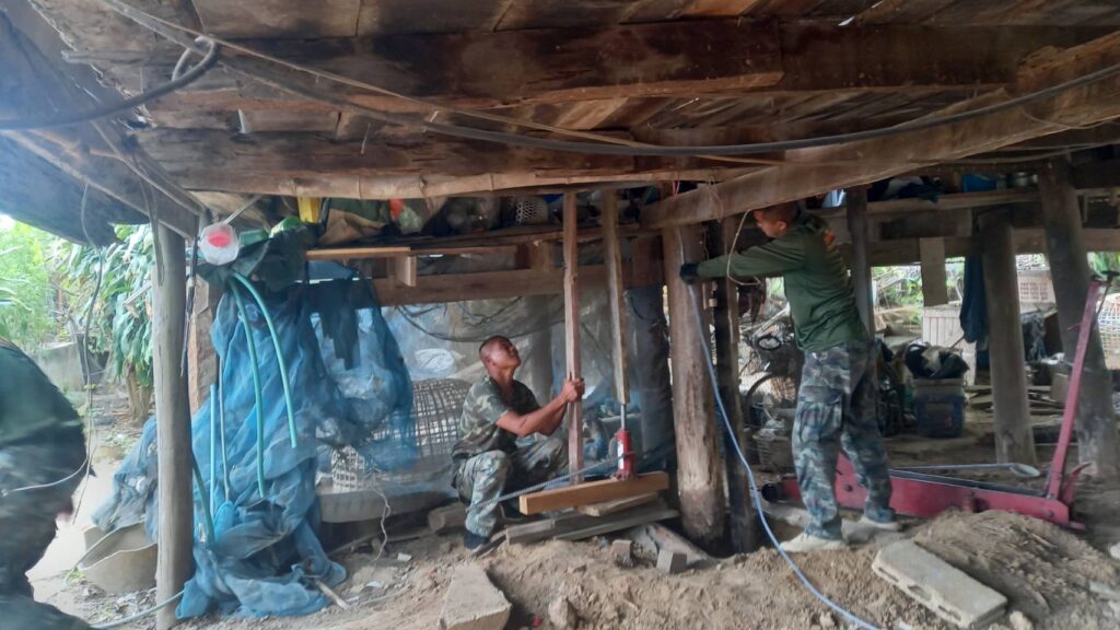 ลงพื้นที่ติดตามให้กำลังใจชุดช่างจิตอาสา มทบ.15 ซึ่งมี พ.ท.สุรเดช ปานช้าง หน.ฝยย.มทบ.15,ร.อ.บรรเทิง ทองหยาด นายทหารสาธารณูปโภค มทบ. 15,กำลังพลนายสิบ และพลทหารจาก มทบ.15 รวม 13 นาย ที่กำลังทำการซ่อมแซม และปรับปรุงบ้านพักอาศัยให้กับ นางสาวเทียม เอกบุตร (ยาย) อยู่บ้านเลขที่ 80 ม.8 ต.ไร่สะท้อน อ.บ้านลาด จ.เพชรบุรี อาศัยอยู่กับหลานสาวชื่อ นางสาวภัชรินทร์ เหมือนอ่วม กำลังศึกษาอยู่ในชั้น ม.3 โรงเรียนบ้านลาดวิทยา ซึ่งเป็นเด็กเรียนดี เกรดเฉลี่ยด้านการศึกษาอยู่ที่ 3.90 แต่ครอบครัวยากจนอาศัยอยู่กับยาย 2 คน