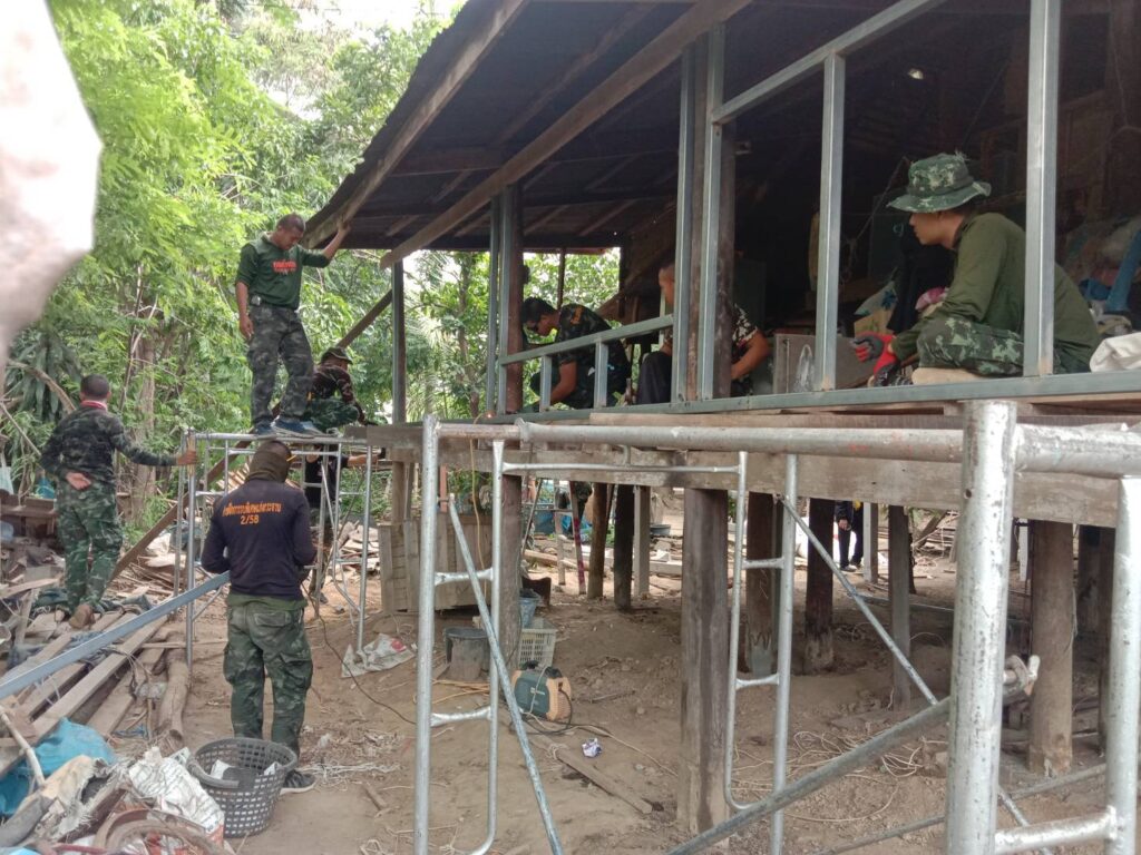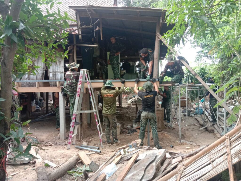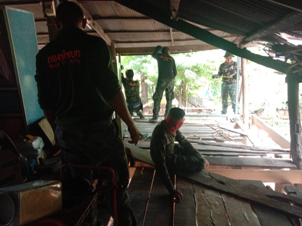 ทั้งนี้งบประมาณค่าวัสดุได้รับมาจากโครงการซ่อมสร้างบ้านผู้ยากไร้ของกองทัพภาคที่ 1 เจ้าของบ้านได้กล่าวแสดงความขอบคุณทหารชุดช่างและผู้ที่ให้การช่วยเหลือเนื่องจากตนเองไม่มีรายได้เพียงพอที่จะมาปรับปรุงบ้านคณะฯได้ให้กำลังใจและจะประสานการช่วยเหลือหลานเพื่อให้มีโอกาสในการศึกษาต่อไป