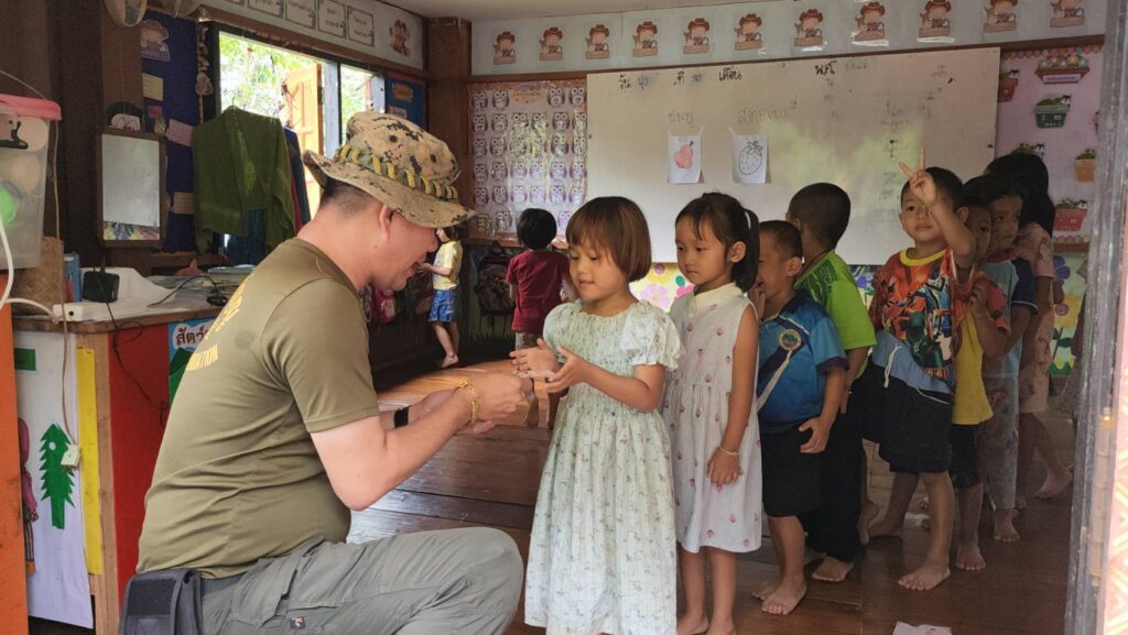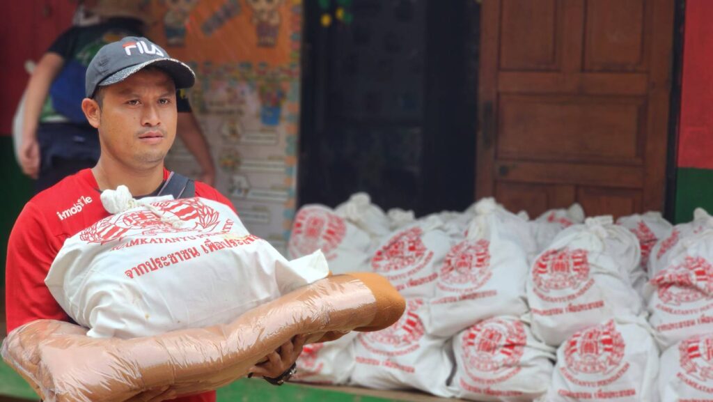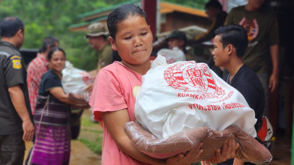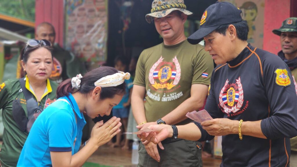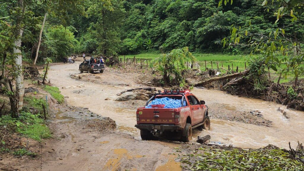 ด้าน คุณไทด์ และคุณโบ๊ท กล่าวว่า หลังจากที่ชุมชนและโรงเรียนแห่งนี้ได้รับผลกระทบจากวาตภัยในช่วงสัปดาห์ที่ผ่านมาอีกทั้งในพื้นที่ยังคงได้รับผลกระทบจากพายุฝนตกต่อเนื่องจนทำให้การเดินทางเข้าออกของหมู่บ้านถูกตัดขาด ถนนสายหลักที่จะเข้าออกชุมชนแห่งนี้ถูกน้ำกัดเซาะและมีดินสไลด์ขวางเส้นทาง บางจุดถนนเละจนรถธรรมดาไม่สามารถเข้าออกหมู่บ้านได้ต้องใช้รถโฟรวีลหรือรถออฟโรสยกสูงเท่านั้น ทำให้ชาวเขาจำนวนมากทั้งคนแก่และเด็กนักเรียนขาดแคลนอาหารในการดำรงชีพ จึงมีการร้องขอความช่วยเหลือมูลนิธิร่วมกตัญญูเข้ามา ทางประธานมูลนิธิร่วมกตัญญู โดย ดร.รัตนา สมสกุลรุ่งเรือง,คุณสมศักดิ์ ปาลวัฒน์ ผู้จัดการมูลนิธิร่วมกตัญญู,คุณ บิณฑ์ บรรลือฤทธิ์,ผู้จัดการฝ่ายกิจกรรมพิเศษ ได้สั่งแพคถุงยังชีพและระดมทีมกู้ภัยออฟโรสของอาสาสมัครและมูลนิธิร่วมกตัญญู ลำเลียงสิ่งของขึ้นมาช่วยเหลือชาวบ้านในครั้งนี้ ถึงแม้ว่าการเดินทางจะมหาโหดตลอดเส้นทางขึ้นเขานั้น แต่พอมาถึงได้เห็นรอยยิ้มของเด็กๆ และคนในชุมชน พวกเราก็หายเหนื่อยและรู้สึกดีใจที่ได้เข้ามาช่วยเหลือ ซึ่งชุมชนและโรงเรียนแห่งนี้ พอเข้ามาสัมผัสแล้วจะยิ่งน่าเห็นใจเป็นอย่างมาก นอกจากจะอยู่ในถิ่นธุรกันดารแล้ว ยังไม่มีไฟฟ้าใช้ มีเพียงแผงโซล่าเซลไม่กี่แผงซึ่งก็ไม่เพียงพอต่อการผลิตไฟ ทำให้เด็กๆยังขาดสื่อการเรียนการสอนที่ทันสมัยอีกมาก จึงฝากเป็นสะพานบุญไปยังทุกภาคส่วนที่อยากเข้ามาช่วยเหลือลองนึกถึงโรงเรียนแห่งนี้