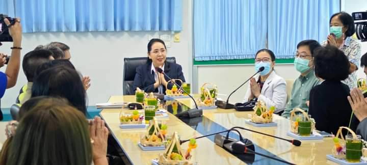 พร้อมด้วยคณะผู้บริหาร และบุคลากร ให้การต้อนรับคณะผู้บริจาค คุณหญิงสมปอง วรรณิสสร และ